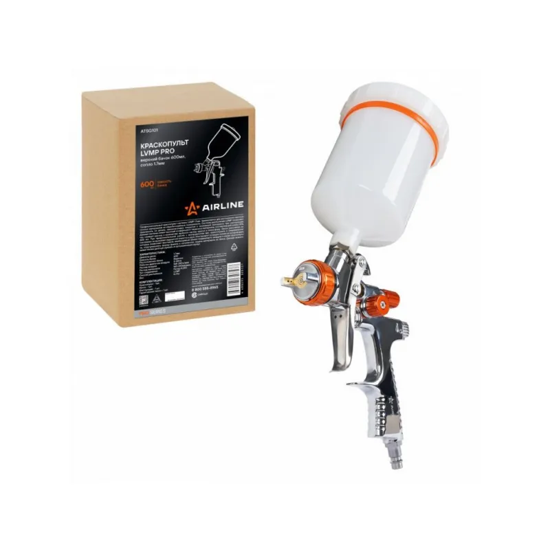 Краскопульт LVMP PRO, верхний бачок 600мл, сопло 1.7мм Описание: Краскопульт PRO бренда AIRLINE имеет сопло / дюзу диаметром 1.7 мм, что позволяет ему эффективно распылять лакокрасочные материалы на различные поверхности. Уникальная технология LVMP обеспечивает перенос около 70% лакокрасочного материала, что значительно снижает его расход и минимизирует выброс частиц краски в атмосферу. Бачок краскопульта рассчитан на 600 мл и имеет эргономичную форму, что обеспечивает комфортную работу с инструментом в течение длительного времени. Пистолет краскораспылителя оснащен тремя регулировками, позволяющими точно настроить объем подаваемого воздуха в канал, форму факела и количество подаваемого материала. Этот ручной пневматический краскопульт предназначен для нанесения красок, лаков, грунтовок и других покрытий. Он идеально подходит для строительных и ремонтных работ, а также для покраски автомобилей и других объектов. Набор станет отличным дополнением к вашему домашнему инструментарию, значительно упрощая процесс обработки поверхностей. Он также будет полезен при ремонте автомобиля. Характеристики: Артикул: ATSG101 Вес, кг: 0.6 Тип соединения: Рапид евро Диаметр сопла: 1.7 Диаметр присоединительного штуцера: 1/4 Рабочее давление воздуха, АТМ: 2.5 Расход воздуха, л/мин: 250 Ёмкость бачка, мл: 600 Система распыления: LVMP Расход материала: 200 расположение бачка: Сверху Комплектация: Краскопульт - 1 шт Бачок - 1 шт Инструкция - 1 шт Гарантийный талон - 1 шт Коробка - 1 шт Гарантия: от 1 года.