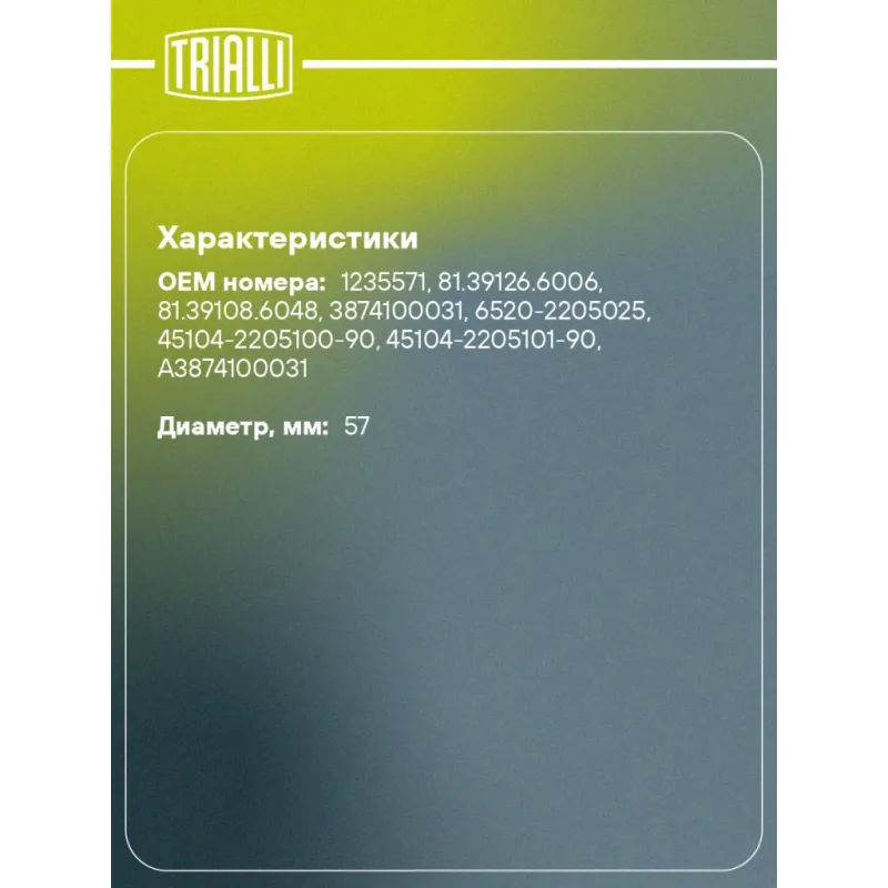 | Диаметр, мм | 57 |