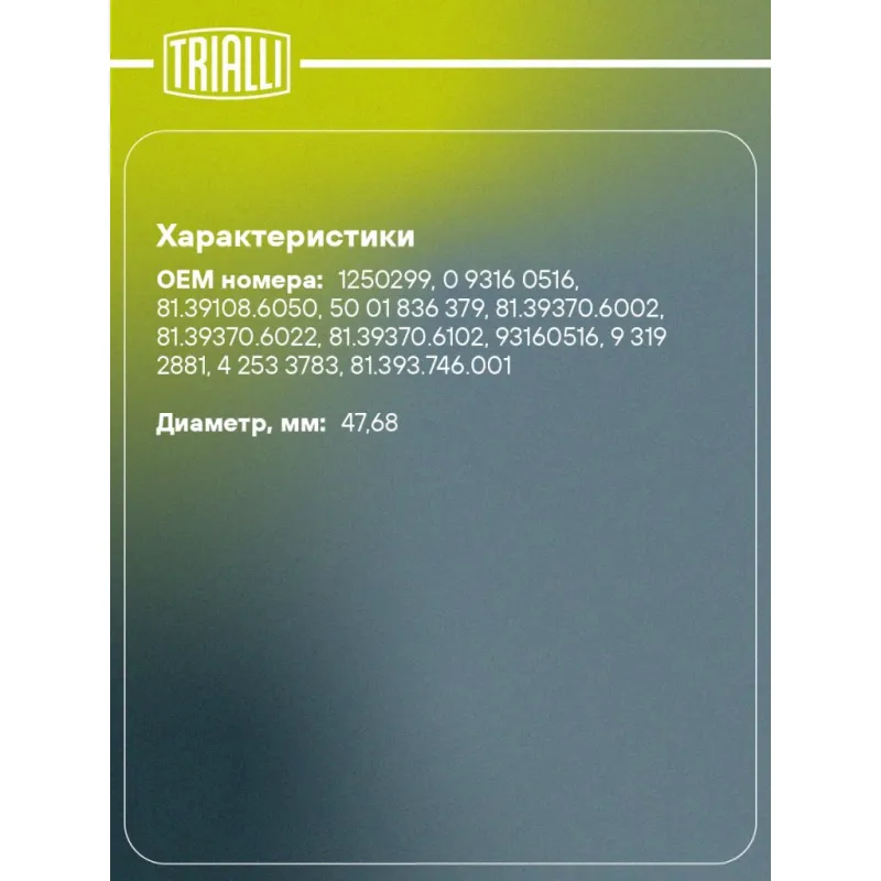 | Диаметр, мм | 47.68 |