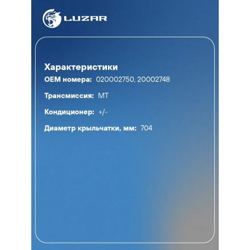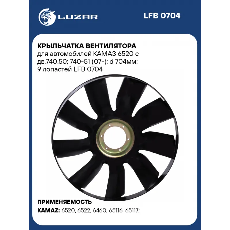 Крыльчатка вентилятора для автомобилей КАМАЗ 6520 с дв.740.50; 740-51 (07-); d 704мм; 9 лопастей Характеристики: Артикул: LFB 0704 OEM номера: 020002750, 20002748 Температура включения, °С: - Температура выключения, °С: - Количество на автомобиль: 1 Трансмиссия: MT Кондиционер: +/- Диаметр крыльчатки, мм: 704 Подходит для авто: КамаАЗ 6520, 6522, 6460, 65116, 65117, 65225 Для проверки применяемости отправьте VIN автомобиля через вкладку "Есть вопросы о товаре?" Комплектация: Крыльчатка вентилятора - 1 шт Паспорт изделия - 1 шт Гарантия: от 1 года.