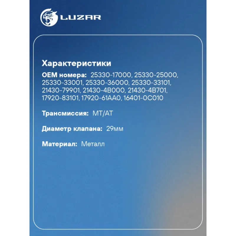 Крышка (пробка) радиатора для автомобилей Hyundai/Kia/Nissan/Mazda/Toyota/Honda 0.9 bar (большой клапан) Характеристики: Артикул: LL 0809 OEM номера: 25330-17000, 25330-25000, 25330-33001, 25330-36000, 25330-33101, 21430-79901, 21430-4B000, 21430-4B701, 17920-83101, 17920-61AA0, 16401-0C010, 16401-50051, 16401-50070, 16401-76020, 16401-50050, 74511-3051, 74511-3052, 16401-16010, 21430-17C00, MB 660055, ZZM2-15-205, KL78-15-205, 16401-50020, 16401-50021, 19045-PR3-005, FEG8-15-205, 21430-0B200, 19045-PM3-004, 21430-1B000, 21430-2Z000, 45113-GA020, 45113-GA021, 45113-GA120, 45113-GA121, 17920-83100, 17920-82000, K817-15-205, 19045-PR7-A07, 21430-4B700, 16401-01010, 19045-PR7-A08, 19045-PR7-A06, N3A1-15-205, 19045-PR7-J24, KL11-15-205A, N321-15-205, 19045-PR7-A03, 21430-2TH0A, MR 481217, 21430-01F02, 45113-GA022, 21430-01F01, MB 660735, MB 605277, 16401-63010, 16401-15210, 16401-71010, 17920-60B20, MB 845036, MB 356417, 25330-1G000, 25330-1P000, 25340-45000, 25330-02000, 25330-1G010, 0K30A 15 205, 0K202 15 205, 0K206 15 205, KK150-15-205, K K731 15 205A, 25330-33000, 253405H000, 2533021000, 2533033100, 0K20215205A, MR 481218, MB660701, 45153AC030, 1640154750, 1640150071, 2143050A01, 2143050A02, 214307996E, 2143001F00, KF0115205, G6A115205, D31615205, N3H115205, N35015205, N3A115205A, F8B715205, 19045PR3004, 19045P08003, 19045P08004, 19045PM3003, 1K2N115205, 1350A088 Сопутствующий товар: Радиаторы охлаждения: LRc 0812; LRc 08122; LRc 08158; LRc 08175; LRc 0818; LRc 0822; LRc 0875; LRc 0884; LRc 0887; LRc 08B4; LRc 08C5; LRc 1114; LRc 11151; LRc 11168; LRc 11189; LRc 1122; LRc 14111; LRc 141AX; LRc 141BM; LRc 141CA; LRc 141G4; LRc 141H8; LRc 1428; LRc 1432; LRc 14AX; LRc 14BM; LRc 14F9; LRc 14H8; LRc 221FS; LRc 2309; LRc 2310; LRc HUAc05350; LRc HUAc94125; LRc HUAc94150; LRc HUAc94270; LRc HUAc99240; LRc HUGz02110; LRc HUGz02235; LRc HUGz02320; LRc HUMx01101; LRc HUMx01200; LRc HUPr96100; LRc HUPr96250; LRc KIPc04100; LRc KIPc04200; LRc KIRi05100; LRc KIRi05110; LRc KIRi05200; LRc KIRi05210; LRc KISp962F2; LRc KISp963A2; LRc KISt04350 Количество на автомобиль: 1 Трансмиссия: MT/AT Кондиционер: +/- Материал: Металл Давление, БАР: 0,9 (90кПа) Диаметр клапана: 29мм Подходит для авто: Hyundai Getz (02-), Galloper (98-), Porter (H-100/TagAZ) (96-), Matrix (01-), Avante HD (06-), Verna (06-), Accent II (99-), Accent II (TagAZ) (01-), Starex (H-1) (96-), Tucson I (04-), H-100 (93-), Sonata III (93-), Sonata III (93-), Atos (98-), Accent I (94-) Mazda 626 (97-), 323 BG (89-), 626 (87-), 626 (87-), 323 BF (85-), 323 BJ (98-), BT-50 I (06-), BT-50 I (06-), 323 BA (94-), 323 BA (94-), MPV (99-), MX-5 (98-), MX-5 (98-), 121 III (96-) Nissan Tiida (04-), Almera N16 (00-), Almera N16 (00-), X-Trail T30 (01-), X-Trail T30 (01-), Micra K12 (02-), Micra K12 (02-), Primera P11 (96-), Primera P11 (96-), Primera P12 (02-), Primera P12 (02-), Patrol Y60 (87-), Sunny N13 (86-), Sunny N13 (86-), Pathfinder R50 (95-), Primera P10 (90-), Note (06-), Note (06-), X-Trail T31 (07-), 350Z (02-), Patrol Y61 (97-), Almera N15 (95-), Almera N15 (95-), Sunny Y10 (90-), Micra K11 (92-), Sunny N14 (90-), Maxima A32 (94-), Terrano WD21 (86-), Terrano R20 (93-), Teana J31 (02-), Tiida (15-), Murano I (02-), Maxima A33 (99-), Juke (10-), Juke (10-) Mitsubishi Pajero II (90-), Pajero II (90-), Lancer IX (00-), Lancer IX (00-), L200 (96-), L200 (96-), Colt (04-), Galant V (92-), Galant V (92-), Carisma (95-), Carisma (95-), Pajero III (00-), Pajero III (00-), Pajero Sport K90 (98-), Pajero Sport K90 (98-) Toyota Land Cruiser 80 (89-), Land Cruiser 70 (84-), Hiace H100 (89-), Corolla E100 (91-), Chaser VI X100 (96-), 4Runner (N180) (95-) Suzuki Vitara (96-), Grand Vitara (05-) Subaru Impreza WRX G11 (00-), Legacy B12 (98-), Legacy B10 (89-), Impreza G10 (92-), Legacy B11 (94-), Forester SF (97-) Lexus LS 400 (94-) Honda Civic IV (87-), Civic V (91-) Kia Picanto (04-), Rio II (05-), Shuma I (97-), Sephia II (97-), Sephia II (97-), Sephia II (97-), Sportage I (93-), Rio I (00-), Carnival I (98-), Carnival I (98-), Sportage II (04-), K-Series (04-), Carnival II (06-), Carens I (99-), Shuma II (01-) Для проверки применяемости отправьте VIN автомобиля через вкладку "Есть вопросы о товаре?" Комплектация: Крышка радиатора Гарантия: от 1 года.