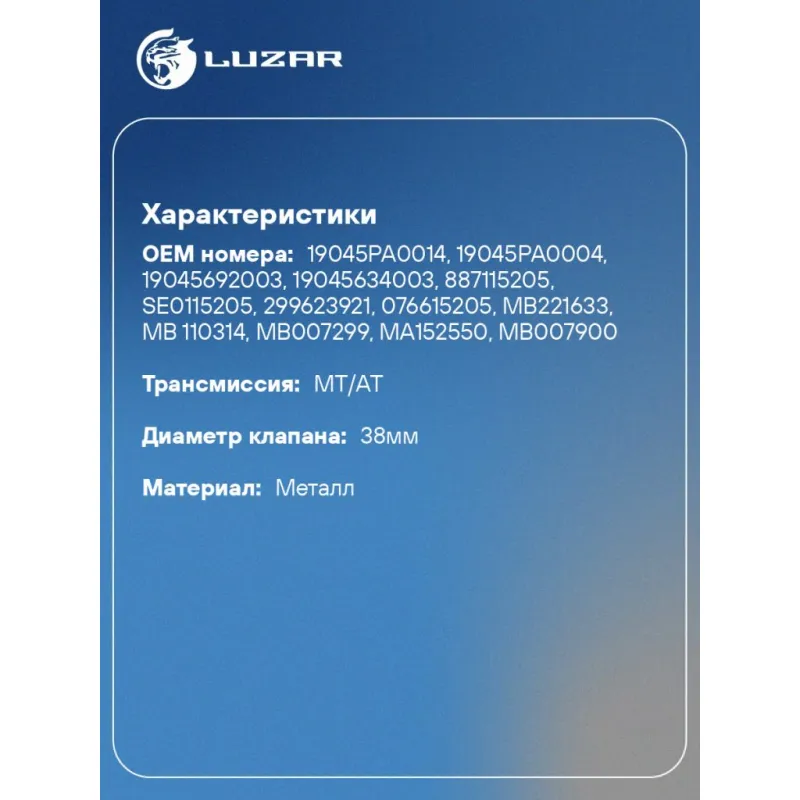 Крышка (пробка) радиатора для автомобилей Toyota/Honda/Mazda/Nissan 0.9 bar (большой клапан) Характеристики: Артикул: LL 1901 OEM номера: 16401-41021, MB221633, 16401-36011, 16401-49015, MB 110314, MB007299, 19045PA0014, 19045PA0004, 19045692003, 19045634003 , 1640150010, 1640136010, 2143089907, 887115205, SE0115205, 299623921, 745113062, 1792078000, 076615205, MA152550, 2143089906 , 2143017B07, 21430-C0500 , 21430-89905 , MB007900, MB007571, 16401-41020, 16401-48030, 1640187706, 1792063210 Количество на автомобиль: 1 Трансмиссия: MT/AT Кондиционер: +/- Материал: Металл Давление, БАР: 0,9 (90кПа) Диаметр клапана: 38мм Подходит для авто: Audi 80 (78-), 80 (86-) Mazda 323 BF (85-) Mitsubishi Pajero II (90-), Galant (87-) Toyota Land Cruiser 70 (84-) Volkswagen LT (96-) Honda Prelude (83-) Для проверки применяемости отправьте VIN автомобиля через вкладку "Есть вопросы о товаре?" Комплектация: Крышка радиатора Гарантия: от 1 года.