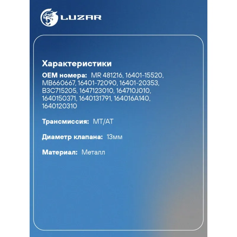 | Диаметр клапана | 13мм |