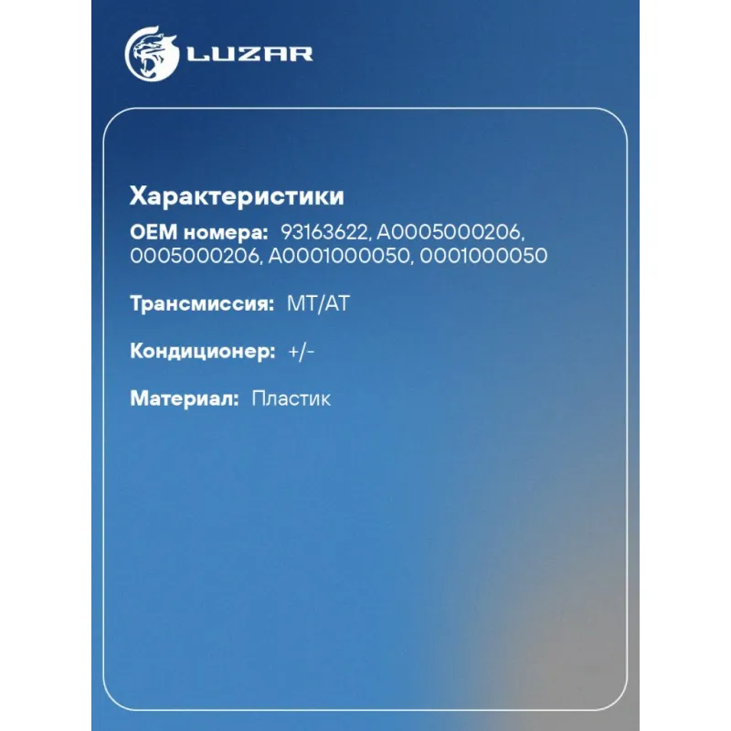 | Количество на автомобиль | 1 |