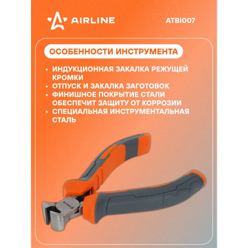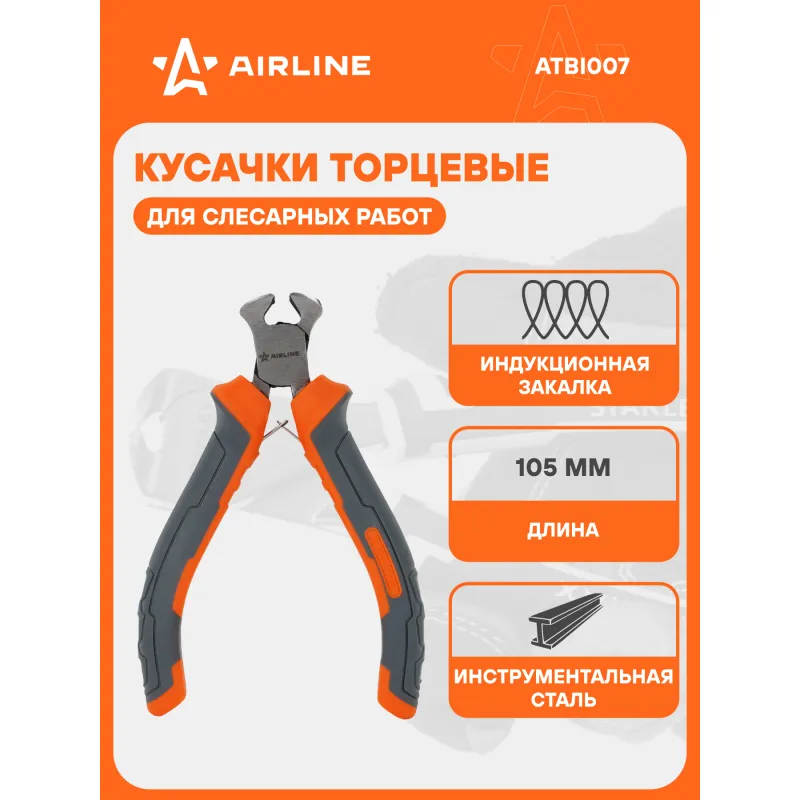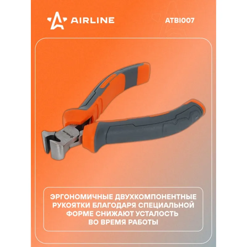 Кусачки торцевые 105мм Описание: Двухкомпонентные эргономичные рукоятки шарнирно-губцевого инструмента AIRLINE создают комфортное ощущение при работе, а специальная форма гарантирует безопасность труда и снижение усталости при работе. Шарнирно-губцевый инструмент AIRLINE изготовлен из специальной высококачественной инструментальной стали. При производстве заготовки подвергаются закалке и отпуску, для улучшения рабочих характеристик инструментов. Режущие кромки подвергаются индукционной закалке. Применяется финишное покрытие двух типов: хромирование и фосфатирование. Применяется для слесарных работ. Не предназначен для работы в электроустановках. Характеристики: Артикул: ATBI007 Размер, мм: 105 Комплектация: Кусачки - 1 шт Гарантия: от 1 года.