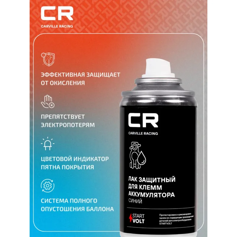 Лак защитный для клемм аккумулятора, аэрозоль, 210ml Описание: Защитный контакт-спрей для клемм аккумулятора Carville Racing используется для долговременной защиты клемм аккумулятора и электрических соединений от последствий воздействия окружающей среды: окисления, коррозии, пыли. Препятствует утечкам электричества и увеличивает ресурс аккумуляторной батареи. Характеристики: Артикул: G7210282 Гарантийный срок хранения: 5 лет Объём / Нетто / Брутто: 210мл / 210г / 311г Область применения: Клеммы аккумуляторной батареи; Клеммы, Электрические разъемы. Состав: алифатические углеводороды >30%, ароматические углеводороды >30%, метилацетат