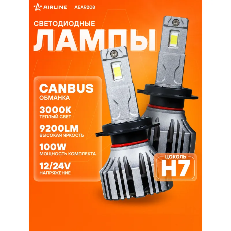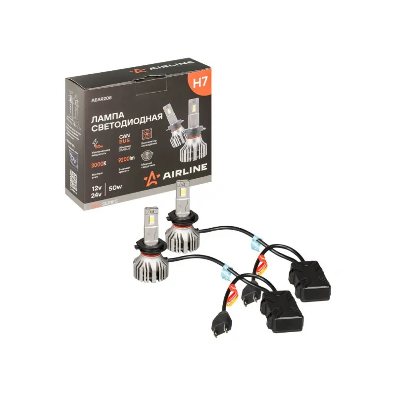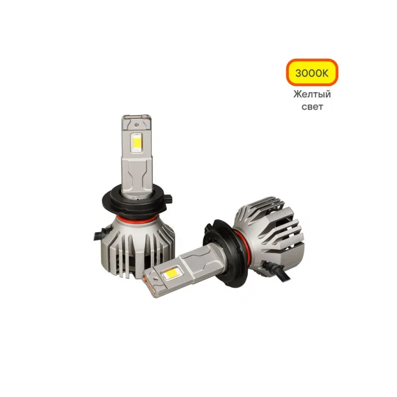 Лампа светодиодная H7 PRO, 50Вт, 9200Лм (4600Лм x 2), 3000К (Желтый), 12/24В, комплект 2 шт. Описание: LED лампы с цоколем H7 формируют четкую светотеневую границу, направляя световой поток на дорожное полотно и исключая ослепление встречного движения, что повышает безопасность эксплуатации. Светодиодные ламы для рефлекторной и линзованой оптики машины. Величина светового потока – 9200 Лм, цветовая температура 3000 К обеспечивает яркий белый свет, приближенный к дневному. Номинальная мощность LED ламп – 100 Вт, рабочее напряжение – 12/24 В. Автомобильные лампы оснащены встроенной обманкой (CAN bus), устраняющим ошибки на приборной панели и обеспечивающего совместимость с автомобилями, оборудованными системой контроля исправности ламп. В отличие от галогенных аналогов, светодиодные лампы потребляют меньше энергии, что уменьшает нагрузку на электросеть автомобиля и способствует её стабильной работе. Комбинированная система охлаждения включает пассивный радиатор и встроенный высокоэффективный вентилятор, что обеспечивает надежный отвод тепла от светодиодов и предотвращает их перегрев. Алюминиевый корпус устойчив к коррозии и механическим воздействиям, дополнительно рассеивает тепло и продлевает срок службы устройства. Возможность регулировки угла положения ламп обеспечивает точную настройку светового потока для оптимального освещения. Предназначены для установки в дальний и ближний свет, а также в противотуманные фары. Благодаря повышенной мощности они справляются с любой непогодой, будь то снег, дождь или туман. Использование устройств не предназначено для дорог общего пользования. Надежный автотовар обеспечит комфортное и безопасное вождение автомобилисту. Характеристики: Артикул: AEAR208 Цоколь: H7 Тип лампы: Светодиодная Номинальная мощность, Вт: 50 Наличие обманки (CAN bus): Есть Тип обманки (CAN bus): Внешняя на проводе Температура свечения, К: 3000 Цвет свечения: Желтый Яркость комплекта, Лм: 9200 Напряжение, В: 12/24 Факт. потребляемый ток, А: 3.8 Тип светодиодного чипа: GC7035 Тип оптики: Рефлекторная/Линзованная Тип охлаждения: Радиатор; Вентилятор Регулировка положения лампы: Есть Материал корпуса: Алюминий Комплектация: Гарантийный талон - 1 шт Руководство по эксплуатации - 1 шт Лампа светодиодная - 2 шт Упаковочная коробка - 1 шт Гарантия: от 1 года.