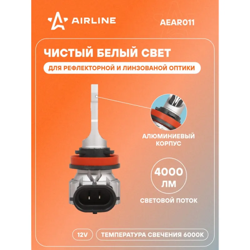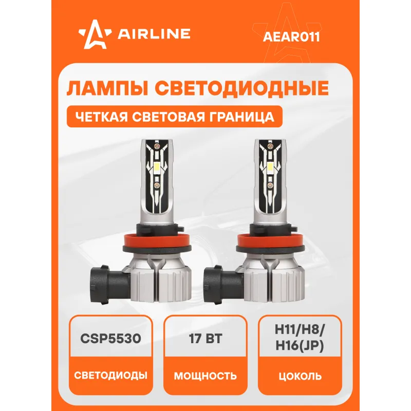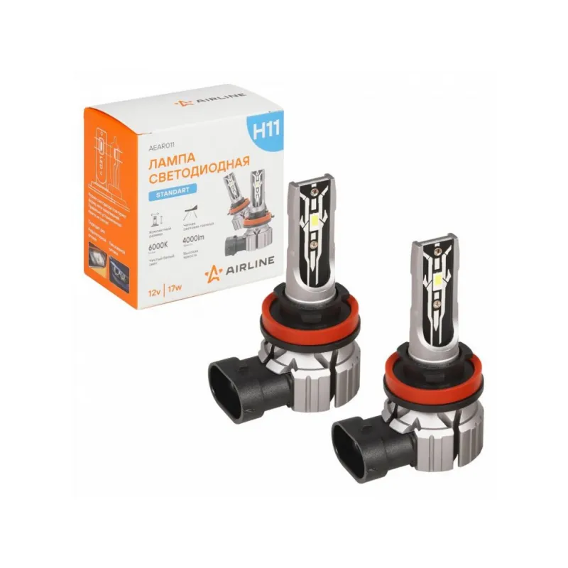Лампа светодиодная H11/H8 STANDARD, 17Вт, 4000Лм (2000Лм x 2), 6000К (Белый), 12В, комплект 2 шт. Описание: Лампа светодиодная, комплект 2 шт, STANDART 12В, 17 Вт, H11/H8, 6000 К, 4000 Лм от бренда AIRLINE AEAR011. Светодиодные лампа для рефлекторной и линзованой оптики. * Четкая светотеневая граница, благодаря тонкой печатной плате и светодиодам в форме нити накаливания. что позволяет использовать его в рефлекторной оптике. Правильно установленная лампа не слепит. * Плоский радиатор позволяет установить лампу в любую фару, без необходимости покупки увеличенной крышки фары. Мощность каждой лампы 17 Вт. Высококачественные светодиоды CSP 5530 обеспечивают высокую яркость и увеличенный ресурс до 30000 часов. Светодиодные лампы имеют более низкое энергопотребление чем штатные (в 3 раза), что не создавая дополнительной нагрузки на электросеть автомобиля. Алюминиевый корпус с объемным радиатором и теплопроводящая печатная плата- отлично охлаждают светодиоды, продлевая срок службы изделия. Корпус из авиационного алюминия 6063. Лампа имеет возможность регулировки угла положения. Цоколь H11/H8/H16. Использование устройств не предназначено для дорог общего пользования. Лампы могут быть установлены в ближний свет и противотуманные фары. Благодаря повышенной мощности, светодиодные лампы справляются с любой непогодой, будь то снег, дождь или туман. Характеристики: Артикул: AEAR011 Цоколь: H11/H8 Тип лампы: Светодиодная Номинальная мощность, Вт: 17 Температура свечения, К: 6000 Цвет свечения: Белый Яркость комплекта, Лм: 4000 Напряжение, В: 12 Факт. потребляемый ток, А: 1.3 Тип светодиодного чипа: CSP 5530 Тип оптики: Рефлекторная/Линзованная Тип охлаждения: Радиатор Регулировка положения лампы: Есть Материал корпуса: Алюминий Комплектация: Лампа светодиодная - 2 шт Руководство по эксплуатации - 1 шт Гарантийный талон - 1 шт Упаковочная коробка - 1 шт Гарантия: от 1 года.