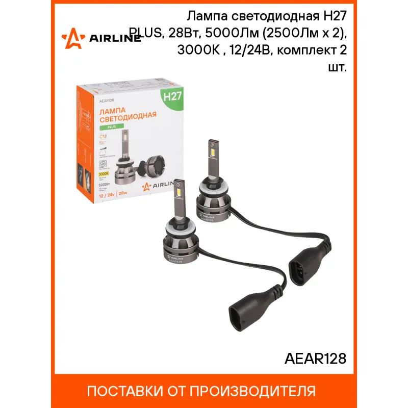 Лампа светодиодная H27 PLUS, 28Вт, 5000Лм (2500Лм x 2), 3000К (Желтый), 12/24В, комплект 2 шт. Описание: Лампа светодиодная 2 шт для рефлекторной/линзованной оптики 12/24 В, 28 Вт, H27, 3000 К, 5000 Лм AIRLINE AEAR128. Высококачественная светодиодные лампа для рефлекторной и линзованой оптики. Серия PLUS. используются как дополнительный источник света на коротких дистанциях и средних дистанциях. Лампа оснащена термоконтролем, что продлевает срок службы. Четкая светотеневая граница, благодаря тонкой медной печатной плате и светодиодам в форме нити накаливания, что позволяет использовать его в рефлекторной оптике. Линзы фокуссируют свет в линию параллельную земле, с четкой световой границей. Правильно установленная лампа не слепит. Мощность каждой лампы 12/24 В. Высококачественные светодиоды обеспечивают высокую яркость и увеличенный ресурс до 50000 часов. Электрическая схема разработана с ограничением тока, защитой от обратного напряжения. Светодиодные лампы имеют более низкое энергопотребление чем штатные, что не создает дополнительной нагрузки на электросеть автомобиля. Алюминиевый корпус с вентилятором и теплопроводящая печатная плата с термоинтерфейсом отлично охлаждают светодиоды, продлевая срок службы изделия. Лампа имеет возможность регулировки угла положения. Цвет Желтый. Место расположения: ПТФ. Использование устройств не предназначено для дорог общего пользования. Характеристики: Артикул: AEAR128 Цоколь: H27 Тип лампы: Светодиодная Номинальная мощность, Вт: 28 Температура свечения, К: 3000 Цвет свечения: Желтый Яркость комплекта, Лм: 5000 Напряжение, В: 12/24 Факт. потребляемый ток, А: 1.6 Тип светодиодного чипа: GC-1860 Тип оптики: Рефлекторная/Линзованная Тип охлаждения: Радиатор; Вентилятор Регулировка положения лампы: Есть Материал корпуса: Алюминий Комплектация: Лампа светодиодная - 2 шт Руководство по эксплуатации - 1 шт Гарантийный талон - 1 шт Упаковочная коробка - 1 шт Гарантия: от 1 года.