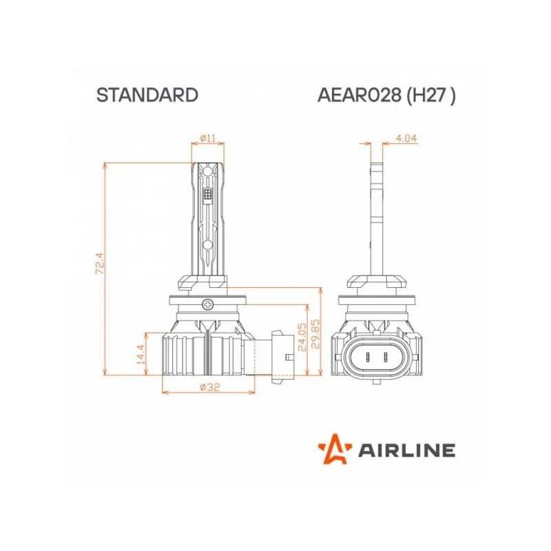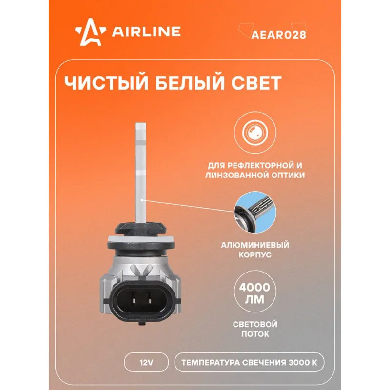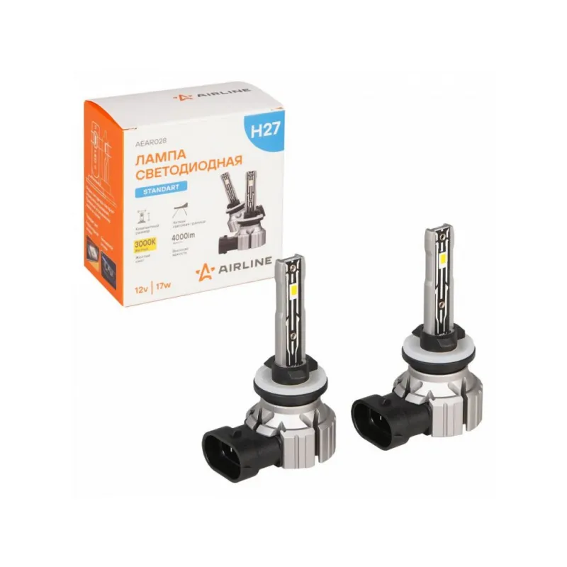 Лампа светодиодная H27 STANDARD, 17Вт, 4000Лм (2000Лм x 2), 3000К (Желтый), 12В, комплект 2 шт. Описание: Лампа светодиодная 2 шт для рефлекторной/линзованной оптики 12 В, 17 Вт, H27, 3000 К, 4000 Лм AIRLINE AEAR028. Линейка компактных светодиодных ламп. Светодиодные лампа для рефлекторной и линзованой оптики. Четкая светотеневая граница, благодаря тонкой печатной плате и светодиодам в форме нити накаливания. что позволяет использовать его в рефлекторной оптике. Правильно установленная лампа не слепит. Плоский радиатор позволяет установить лампу в любую фару, без необходимости покупки увеличенной крышки фары. Мощность каждой лампы 12 В. Высококачественные светодиоды обеспечивают высокую яркость и увеличенный ресурс до 30000 часов. Светодиодные лампы имеют более низкое энергопотребление чем штатные (в 3 раза), что не создавая дополнительной нагрузки на электросеть автомобиля. Алюминиевый корпус с объемным радиатором и теплопроводящая печатная плата- отлично охлаждают светодиоды, продлевая срок службы изделия. Корпус из авиационного алюминия 6063. Лампа имеет возможность регулировки угла положения. Цоколь H27. Цвет Желтый. Место расположения: птф. Использование устройств не предназначено для дорог общего пользования. Характеристики: Артикул: AEAR028 Цоколь: H27 Тип лампы: Светодиодная Номинальная мощность, Вт: 17 Температура свечения, К: 3000 Цвет свечения: Желтый Яркость комплекта, Лм: 4000 Напряжение, В: 12 Факт. потребляемый ток, А: 1.3 Тип светодиодного чипа: CSP 5530 Тип оптики: Рефлекторная/Линзованная Тип охлаждения: Радиатор Регулировка положения лампы: Есть Материал корпуса: Алюминий Комплектация: Лампа светодиодная - 2 шт Руководство по эксплуатации - 1 шт Гарантийный талон - 1 шт Упаковочная коробка - 1 шт Гарантия: от 1 года.