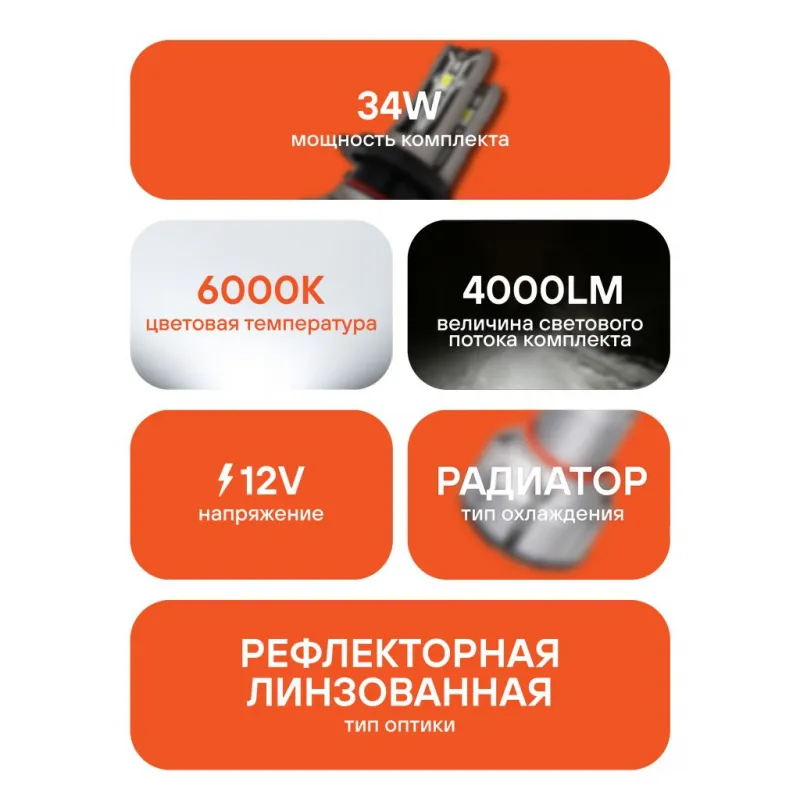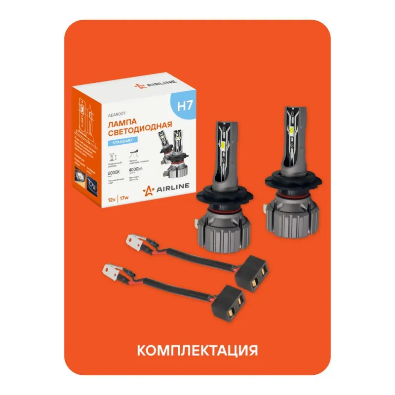 Лампа светодиодная H7 STANDARD, 17Вт, 4000Лм (2000Лм x 2), 6000К (Белый), 12В, комплект 2 шт. Описание: Автомобильные LED лампы с цоколем H7 формируют четкую светотеневую границу, направляя световой поток на дорожное полотно и исключая ослепление встречного движения, что повышает безопасность эксплуатации. Светодиодные лампы для рефлекторной и линзованой оптики машины. Величина светового потока – 4000 Лм, цветовая температура 6000 К обеспечивает яркий белый свет, приближенный к дневному. Номинальная мощность – 34 Вт, рабочее напряжение – 12 В. Светодиодные лампы потребляют меньше энергии, что уменьшает нагрузку на электросеть автомобиля и способствует её стабильной работе. Пассивная система охлаждения, состоящая из радиатора и медного сердечника, обеспечивает надежный отвод тепла от светодиодов и продлевает срок службы устройств. Алюминиевый корпус устойчив к коррозии и механическим воздействиям, дополнительно рассеивает тепло. Возможность регулировки угла положения ламп обеспечивает точную настройку светового потока для оптимального освещения. Предназначены для установки в дальний и ближний свет, а также в противотуманные фары. Благодаря повышенной мощности они справляются с любой непогодой, будь то снег, дождь или туман. Использование устройств не предназначено для дорог общего пользования. Надежный автотовар обеспечит комфортное и безопасное вождение автомобилисту. Характеристики: Артикул: AEAR007 Цоколь: H7 Тип лампы: Светодиодная Номинальная мощность, Вт: 17 Температура свечения, К: 6000 Цвет свечения: Белый Яркость комплекта, Лм: 4000 Напряжение, В: 12 Факт. потребляемый ток, А: 1.3 Тип светодиодного чипа: CSP 5530 Тип оптики: Рефлекторная/Линзованная Тип охлаждения: Радиатор Регулировка положения лампы: Есть Материал корпуса: Алюминий Комплектация: Лампа светодиодная - 2 шт Провода подключения - 2 шт Руководство по эксплуатации - 1 шт Гарантийный талон - 1 шт Упаковочная коробка - 1 шт Гарантия: от 1 года.
