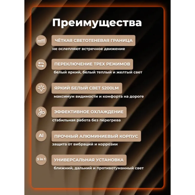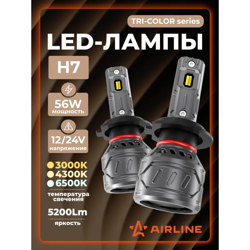 Лампа светодиодная H7 TRI-COLOR, 28Вт, 5000Лм (2500Лм x 2), 3000/4300/6500K (Белый/Желтый), 12/24В, комплект 2 шт. МП-серия Описание: LED лампы AIRLINE AEAR281 с цоколем H7 предназначены для рефлекторной и линзованной оптики, формируют четкую светотеневую границу, направляя световой поток на дорожное полотно и исключая ослепление встречных водителей, что повышает безопасность эксплуатации. Модель оснащена функцией переключения между тремя режимами цветовой температуры: – 3000К – жёлтый свет с высокой проникающей способностью; – 4300К – нейтральный белый свет; – 6500К – холодный белый свет, приближённый к дневному. Переключение режимов осуществляется последовательным включением и выключением лампы. Мощность одной LED лампы – 28Вт, напряжение – 12/24В, яркость комплекта из двух LED ламп – 5000Лм. В отличие от галогенных аналогов, светодиодные лампы потребляют меньше энергии, что снижает нагрузку на электросеть автомобиля и способствует её стабильной работе. Комбинированная система охлаждения, включающая пассивный радиатор и встроенный высокоэффективный вентилятор, обеспечивает надежный отвод тепла от светодиодов и предотвращает их перегрев. Алюминиевый корпус устойчив к коррозии и механическим воздействиям, дополнительно рассеивает тепло и продлевает срок службы ламп. Возможность регулировки угла положения ламп обеспечивает точную настройку светового потока для оптимального освещения. LED лампы предназначены для установки в дальний и ближний свет, а также в противотуманные фары. Устройства не предназначены для использования на дорогах общего пользования. Автосвет AIRLINE – надежное освещение для уверенной поездки в любых условиях. Характеристики: Артикул: AEAR281 Цоколь: H7 Тип лампы: Светодиодная Номинальная мощность, Вт: 28 Температура свечения, К: 3000/4300/6500 Цвет свечения: Белый/Желтый Яркость комплекта, Лм: 5000 Напряжение, В: 12/24 Факт. потребляемый ток, А: 2.3 Тип светодиодного чипа: 4PCS-GC Тип оптики: Рефлекторная/Линзованная Тип охлаждения: Радиатор; Вентилятор Регулировка положения лампы: Есть Материал корпуса: Алюминий Комплектация: Руководство по эксплуатации - 1 шт Лампа светодиодная - 2 шт Гарантийный талон - 1 шт Упаковочная коробка - 1 шт Гарантия: от 1 года.