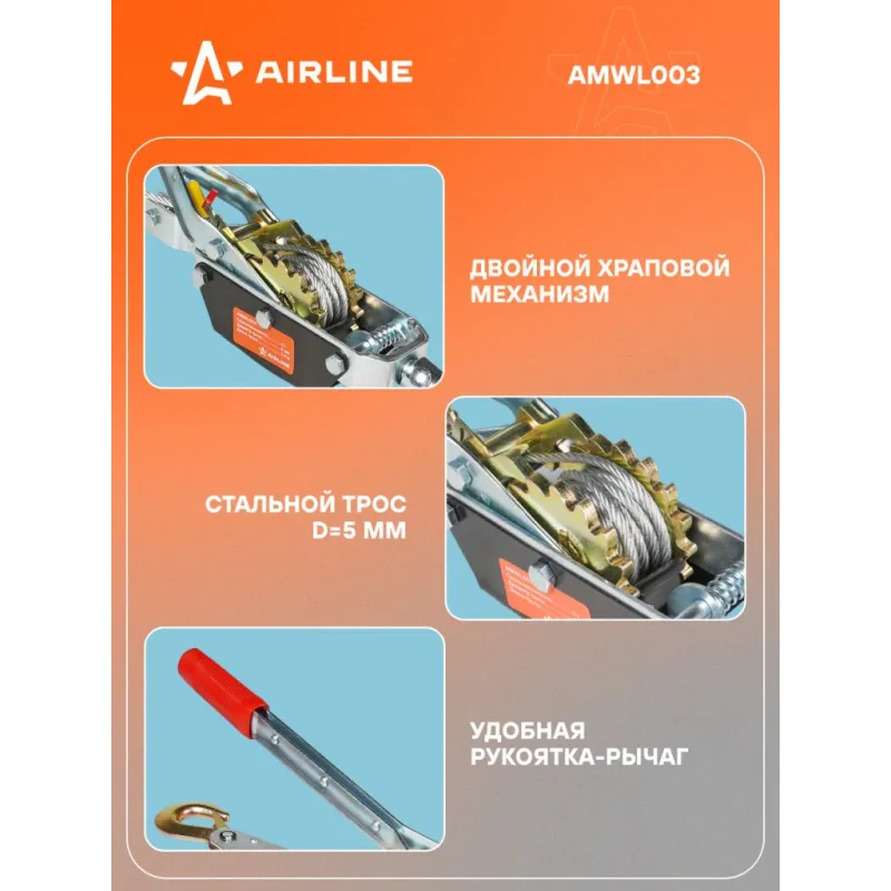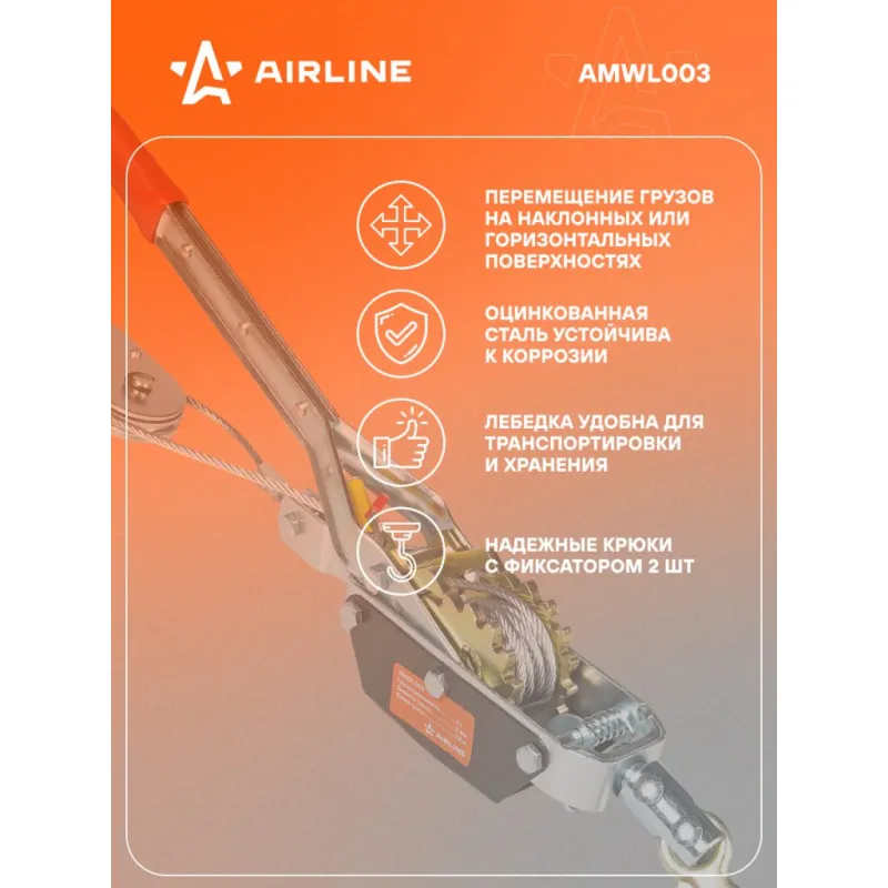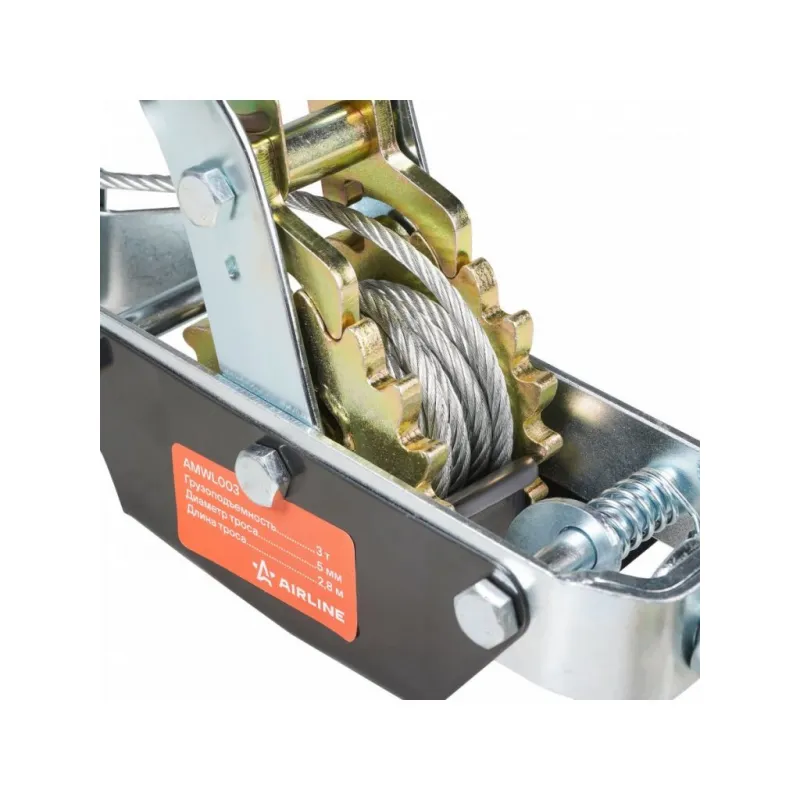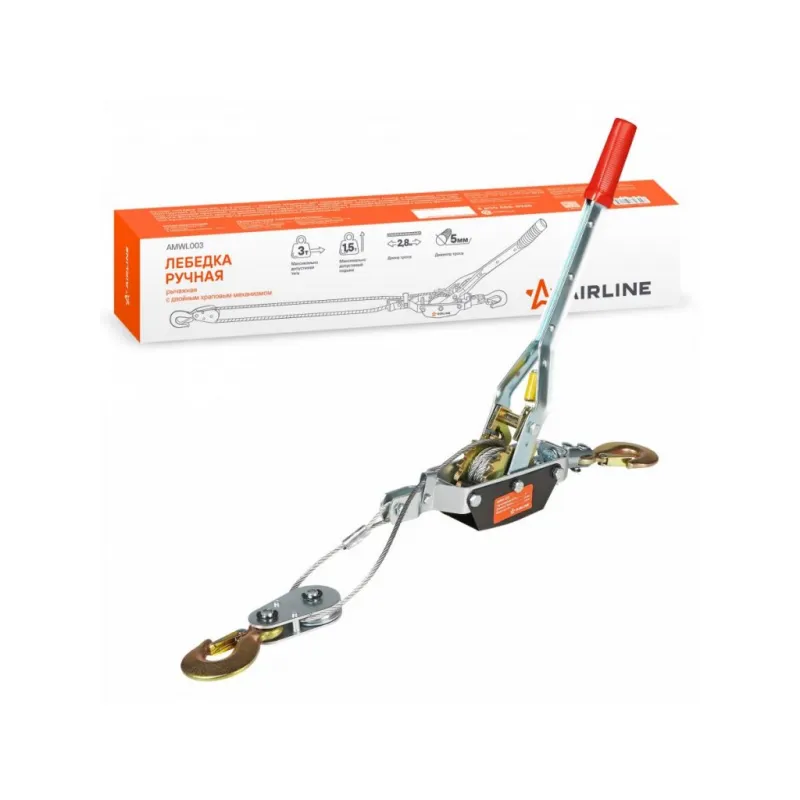 Лебедка ручная рычажная с двойным храповым механизмом 3 т, 2,8 м Описание: Ручная лебедка AIRLINE на 3 тонны — это универсальное и мощное решение для выполнения самых сложных задач, связанных с перемещением тяжёлых грузов и буксировкой транспортных средств. Благодаря своей прочной конструкции из высококачественной оцинкованной стали, лебедка демонстрирует исключительную долговечность и устойчивость к коррозии, что делает её незаменимой для использования в самых суровых условиях эксплуатации, включая строительные площадки, гаражи и аварийные ситуации на дороге. Эта модель оснащена усиленным храповым механизмом, который обеспечивает равномерное и плавное натяжение троса, сводя к минимуму усилия, необходимые для управления. Это не только упрощает работу с грузами, но и увеличивает безопасность при их перемещении. Встроенные крюки с защитными фиксаторами обеспечивают надежное закрепление грузов, предотвращая их случайное смещение или падение во время транспортировки. В комплект входит трос высокой прочности, который устойчив к износу и погодным воздействиям, что значительно увеличивает срок службы изделия. Лебедка оснащена удобной эргономичной рукояткой-рычагом, которая позволяет с минимальными усилиями контролировать процесс перемещения грузов, обеспечивая при этом высокий уровень комфорта и безопасности для оператора. Характеристики: Артикул: AMWL003 Максимальное расстояние между крюками, м: 1,6 Длина троса, м: 2,8 Допустимая масса груза, т: 3 Тип лебедки: Рычажная Диаметр троса, мм: 5 Тип троса: Стальной Количество крюков, шт: 3 Храповой механизм: Цельный Комплектация: Ручная лебедка - 1 шт Картонная упаковка - 1 шт Инструкция/гарантийный талон - 1 шт Гарантия: от 1 года.
