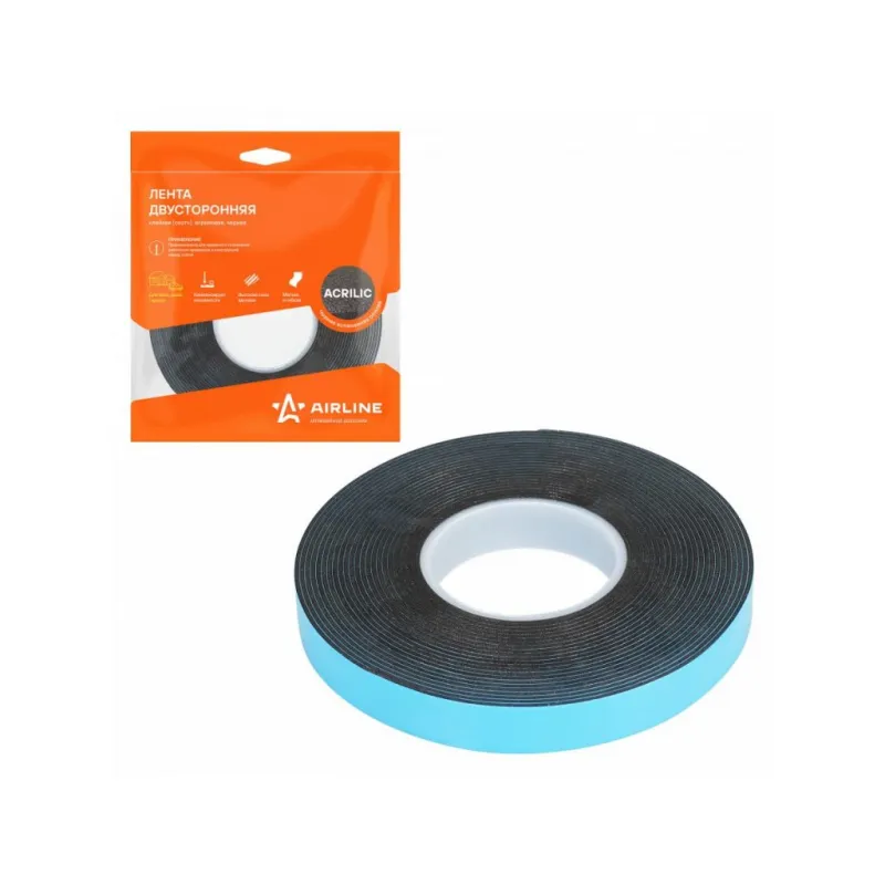 Лента двусторонняя клейкая (скотч), 12мм*5м, акриловая вспененная основа, черная Описание: Двусторонний скотч 5 мх12 мм, акриловая вспененная основа AIRLINE ADSA010 - универсален для декора и мелкого ремонта. Клеевая лента предназначена для соединения предметов между собой из различных материалов не портя их сверлением отверстий или нанесением клея. Мягкая и гибкая основа обеспечивает крепкое сцепление даже с неровными и структурированными поверхностям. Скотч обладает повышенной силой адгезии, поэтому идеально подойдет в качестве настенного крепления, а также для различных материалов, таких как пластик, металл, дерево, стекло, керамика и т.д. Клейкая лента AIRLINE незаменима при ремонтных работах в автомобиле и гараже. Инструкция по применению: 1. Очистите поверхность от грязи, пыли и влаги. 2. Наклейте ленту на выбранный участок. Товар официального производителя AIRLINE. Полезный товар для дома, школы и офиса. Лента из акриловой пены может выдерживать большие нагрузки и длительные периоды эксплуатации. Характеристики: Артикул: ADSA010 OEM номера: VHB 4910F Ширина, мм: 12 Толщина ленты, мм: 1 Длина, м: 5 Горючесть: горючая Температура использования, С: -30/+50 Температура монтажа, °С: +5/+40 Цвет лайнера: красный Комплектация: ПЭ пакет - 1 шт Лента - 1 шт Гарантия: от 1 года.