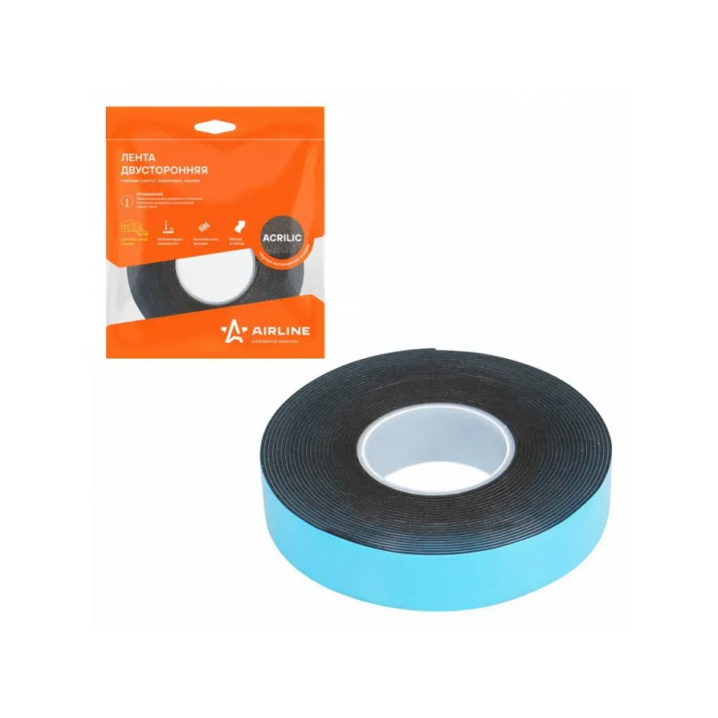 Лента двусторонняя клейкая (скотч), 19мм*5м, акриловая, черная, лайнер синий Описание: Двусторонний скотч 5 мх19 мм, акриловая вспененная основа AIRLINE ADSA019 - универсален для декора и мелкого ремонта. Клеевая лента предназначена для соединения предметов между собой из различных материалов не портя их сверлением отверстий или нанесением клея. Мягкая и гибкая основа обеспечивает крепкое сцепление даже с неровными и структурированными поверхностям. Скотч обладает повышенной силой адгезии, поэтому идеально подойдет в качестве настенного крепления, а также для различных материалов, таких как пластик, металл, дерево, стекло, керамика и т.д. Клейкая лента AIRLINE незаменима при ремонтных работах в автомобиле и гараже. Инструкция по применению: 1. Очистите поверхность от грязи, пыли и влаги. 2. Наклейте ленту на выбранный участок. Товар официального производителя AIRLINE. Полезный товар для дома, школы и офиса. Лента из акриловой пены может выдерживать большие нагрузки и длительные периоды эксплуатации. Характеристики: Артикул: ADSA019 Ширина, мм: 19 Толщина ленты, мм: 1 Длина, м: 5 Горючесть: горючая Температура использования, С: -30/+50 Температура монтажа, °С: +5/+40 Цвет лайнера: голубой Комплектация: Лента - 1 шт ПЭ пакет - 1 шт Гарантия: от 1 года.