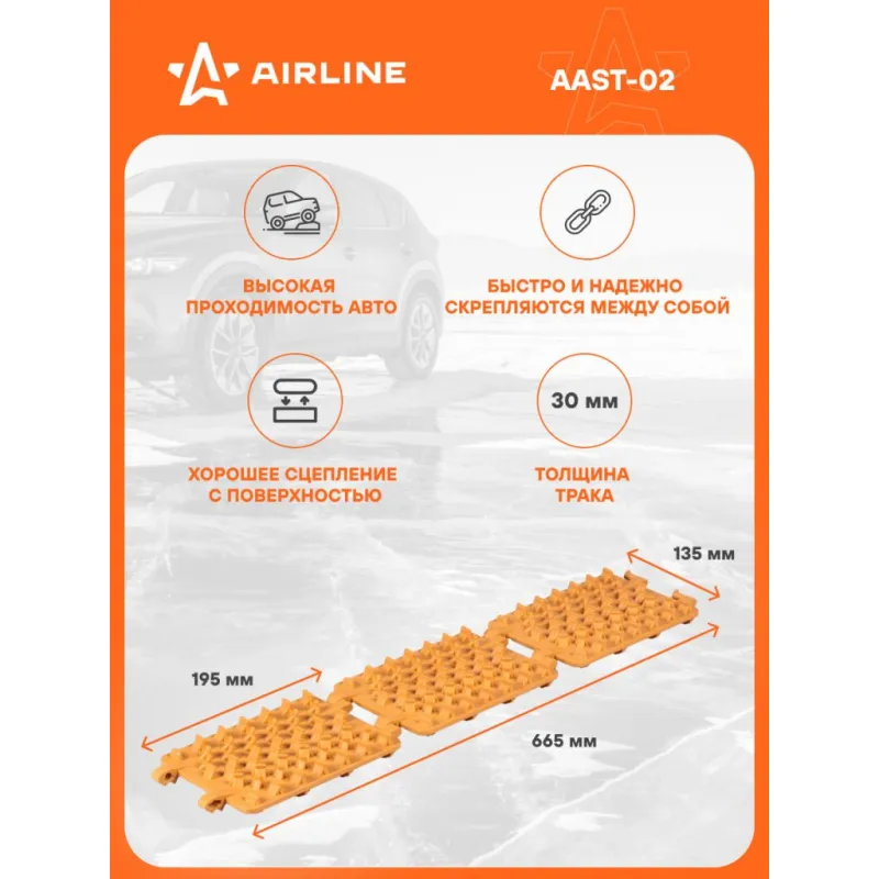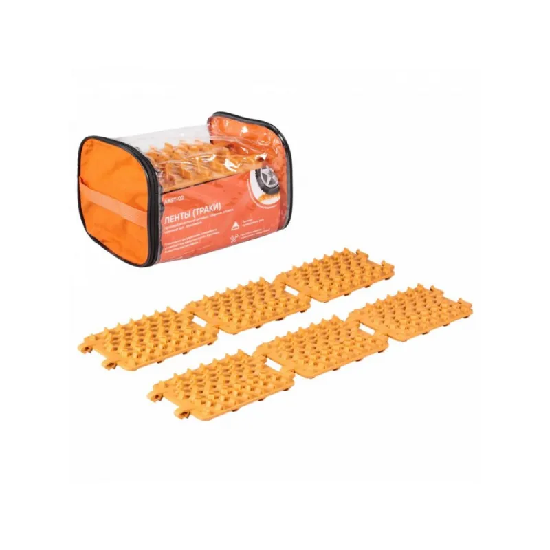 Ленты (траки) противобуксовочные-антибукс, сборные, в сумке, к-т 6 шт., оранжевые Описание: Представляет собой пластиковую ленту (полосу), которая имеет решетчатую форму с множеством шипов для обеспечения нескользящей поверхности. В корпусе ленты имеют крепления для соединения их между собой в одну полосу. С помощью нехитрого приспособления, антипробуксовочных лент Вы сможете быстро и без посторонней помощи вытащить Ваш автомобиль из ямы или грязевого наноса. Каждая из антипробуксовочных лент состоит из трех скрепляющихся между собой делений. Решетчатая поверхность и крепкие соединения противобуксовочных лент позволяют им быть надежным приспособлением, которое поможет при любых погодных и сезонных условиях. Антипробуксовочные ленты выдерживают вес до 3,5 тонн, они произведены из сверхпрочного и, в то же время, гибкого пластика, препятствующего скольжению лент. Подложив ленту под буксующее колесо машины, увязшей в грязи, песке или снегу, Вы значительно быстрее и проще преодолеете любое препятствие. Компактное приспособление не займёт много места в Вашем автомобиле, удобно хранить в специальной сумке (идет в комплекте). Характеристики: Артикул: AAST-02 Нагрузка, т: 3.5 Морозостойкость, С: -30/+50 Длина трака, мм: 195 Ширина трака, мм: 132 Толщина трака, мм: 30 Комплектация: Лента противобуксовочная - 6 шт Сумка ПВХ - 1 шт Гарантия: от 1 года.