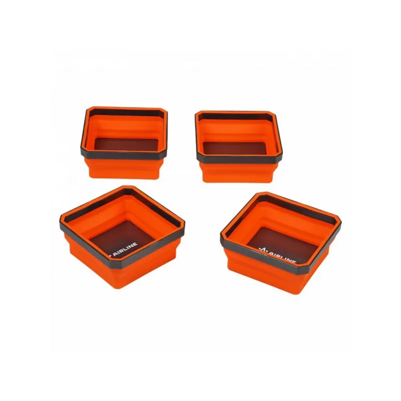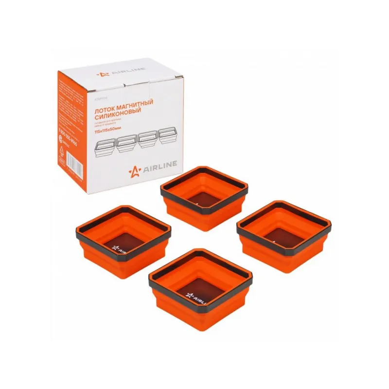 Лоток магнитный силиконовый складной для крепежа 115х115х50мм, набор 4пр. Описание: Набор лотков магнитных складных115х115х50мм 4пр. изготовлен из силикона. Предназначен для хранения различных деталей и инструментов. Обеспечивает порядок и систематизацию на рабочем месте или во время проведения работ. Препятствует потере нужных деталей или крепежа. Характеристики: Артикул: ATMP014 Размер, мм: 115х115х50 Материал лотка: силикон Материал пластины: магнитный пластик Комплектация: Лоток магнитный складной - 4 шт Гарантия: от 1 года.