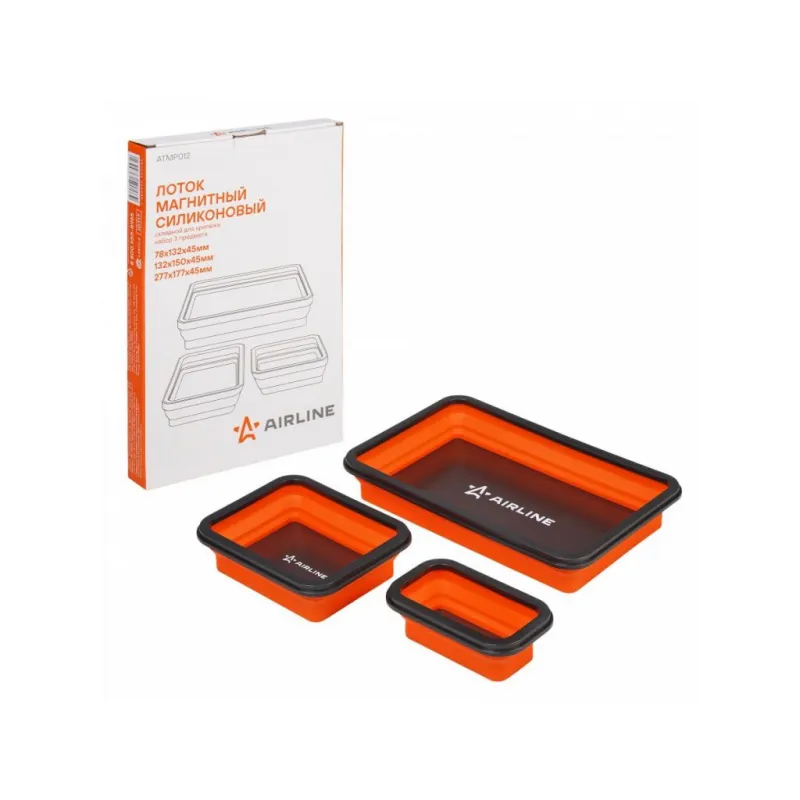 Лоток магнитный силиконовый складной для крепежа, набор 3пр. Описание: Лоток магнитный силиконовый складной для крепежа, набор 3пр.предназначен для хранения и размещения небольших деталей, болтов, гаек, шурупов, клипс и прочих метизов во время работы с различными узлами и агрегатами. Характеристики: Артикул: ATMP012 Размер, мм: 132х150х45, 132х78х45, 277х177х45 Материал лотка: силикон Материал пластины: магнитный пластик Комплектация: Лоток магнитный складной для деталей - 3 шт Гарантия: от 1 года.