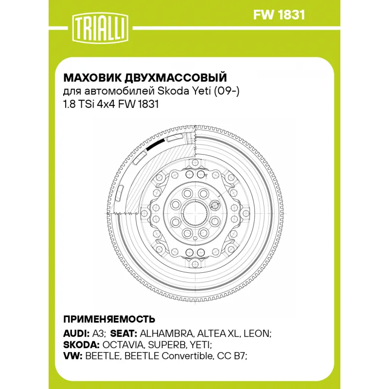 Маховик двухмассовый для автомобилей Skoda Yeti (09-) 1.8 TSi 4x4 Характеристики: Артикул: FW 1831 OEM номера: 06J 105 266 AE, 06J 105 266 AH Особенности конструкции:: Двухмассовый, для мокрого сцепления Гарантийный срок: 2 года/60 000 км Товарная линейка: BLACK Количество на автомобиль: 1 Тип КПП: 6-ступенчатая последовательная... Читать полностью →