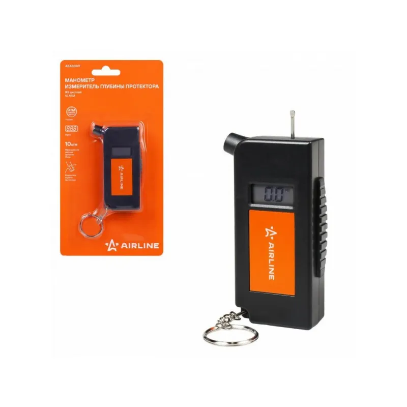 Манометр 2в1, ЖК дисплей 10 АТМ, измеритель глубины протектора Описание: Устройство для измерения давления в шинах автомобиля. Манометр имеет лёгкий и прочный пластиковый корпус. Жидкокристаллический дисплей отображает измеренные показания в BAR и PSI. Манометр включается нажатиембоковой кнопки вниз. Функция автоматического отключения питания обеспечивает долгий срок службы до замены элемента питания. Измеритель глубины показывается остаточный размер протектора с точностью до десятых долей миллиметра. Питание осуществляется за счет батарейки CR2032 Характеристики: Артикул: AEAS009 Максимальное измеряемое давление, атм: 10 Максимальное измеряемое давление, psi: 150 Диапазон измеряемой глубины протектора: от 0 до 16 мм Комплектация: Манометр - 1 шт Блистерная упаковка - 1 шт Гарантия: от 1 года.