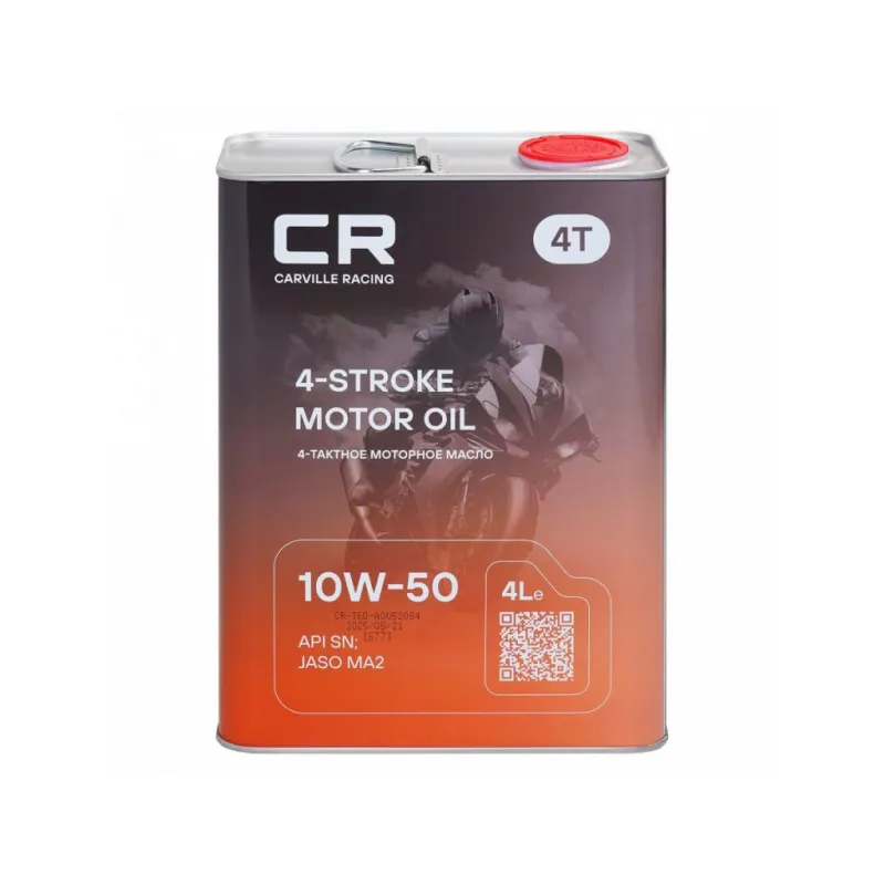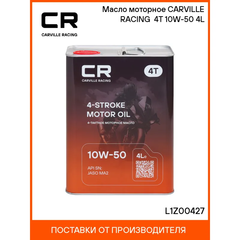 Масло моторное CARVILLE RACING 4T 10W-50 4L Описание: Моторное масло на синтетической основе вязкости SAE 10W-50 от бренда CARVILLE RACING L1Z00427 специально разработанное для современных высокофорсированных двигателях спортивных мотоциклов. Полностью синтетическое моторное масло для четырехтактных двигателей современной мототехники. Обеспечивает: • Быстрое смазывание двигателя; • Низкий расход масла благодаря низкой скорости испарения; • Экономию топлива. • Защиту от образования шлама, нагара и коррозии; • Функциональность клапанов при любых температурах; • Отсутствие нагара в камерах сгорания в зоне поршневых колец и клапанов; Масло автомобильное CARVILLE RACING - максимальная защита вашего двигателя от износа в любых условиях. Характеристики: Артикул: L1Z00427 OEM номера: LUB10W50SS04 Объем, л: 4 Гарантийный срок хранения: 5 лет Применение: современных высокофорсированных двигателях мотоциклов, где производителем предписано применение масла спецификации API SN и JASO MA или MA2. Класс вязкости по SAE: 10W-50 Классификация по API: SN Классификация по JASO: MA2 Комплектация: Масло моторное - 1 шт Гарантия: от 1 года.