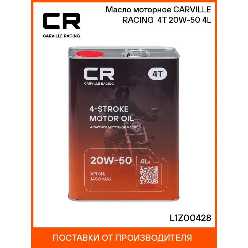 Масло моторное CARVILLE RACING 4T 20W-50 4L Описание: Моторное масло на синтетической основе вязкости SAE 20W-50 от бренда CARVILLE RACING L1Z00428 специально разработанное для 4-х тактных двигателей мотоциклов. Полностью синтетическое моторное масло для четырехтактных двигателей современной мототехники. Обеспечивает: • Быстрое смазывание двигателя; • Низкий расход масла благодаря низкой скорости испарения; • Экономию топлива. • Защиту от образования шлама, нагара и коррозии; • Функциональность клапанов при любых температурах; • Отсутствие нагара в камерах сгорания в зоне поршневых колец и клапанов; Масло автомобильное CARVILLE RACING - максимальная защита вашего двигателя от износа в любых условиях. Характеристики: Артикул: L1Z00428 Объем, л: 4 Гарантийный срок хранения: 5 лет Применение: Подходит для использования во всех 4-х тактных двигателях мотоциклов, где рекомендуются смазочные материалы, соответствующие спецификациям API SN и JASO MA2. Класс вязкости по SAE: 20W-50 Классификация по API: SN Классификация по JASO: MA2 Комплектация: Масло моторное - 1 шт Гарантия: от 1 года.