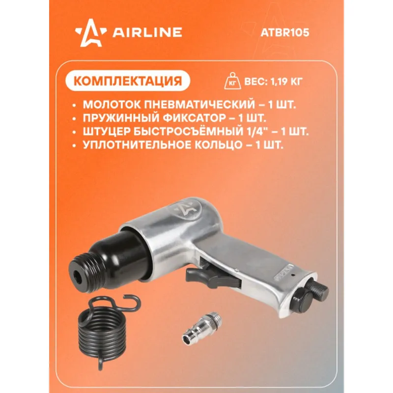Молоток пневматический МП1, 4500 уд/мин Описание: Молоток пневматический применяется для работы с насадками-зубилами разных форм для обработки различных материалов при проведении слесарных работ. Все пневматические молотки производятся по единой технологии на современных автоматизированных предприятиях. Тестирование происходит в собственной испытательной лаборатории, что является залогом качества и надежности. Характеристики: Артикул: ATBR105 Вес, кг: 1.45 Диаметр присоединительного штуцера: 1/4" Рабочее давление воздуха, АТМ: 6.3 Частота ударов, уд/мин: 4500 Расход воздуха, л/мин: 113 Диаметр цанги, мм: 10.2 Комплектация: Молоток пневматический - 1 шт Пружинный фиксатор - 1 шт Штуцер быстросъёмный 1/4" - 1 шт Паспорт - 1 шт Уплотнительное кольцо - 1 шт Гарантия: от 1 года.