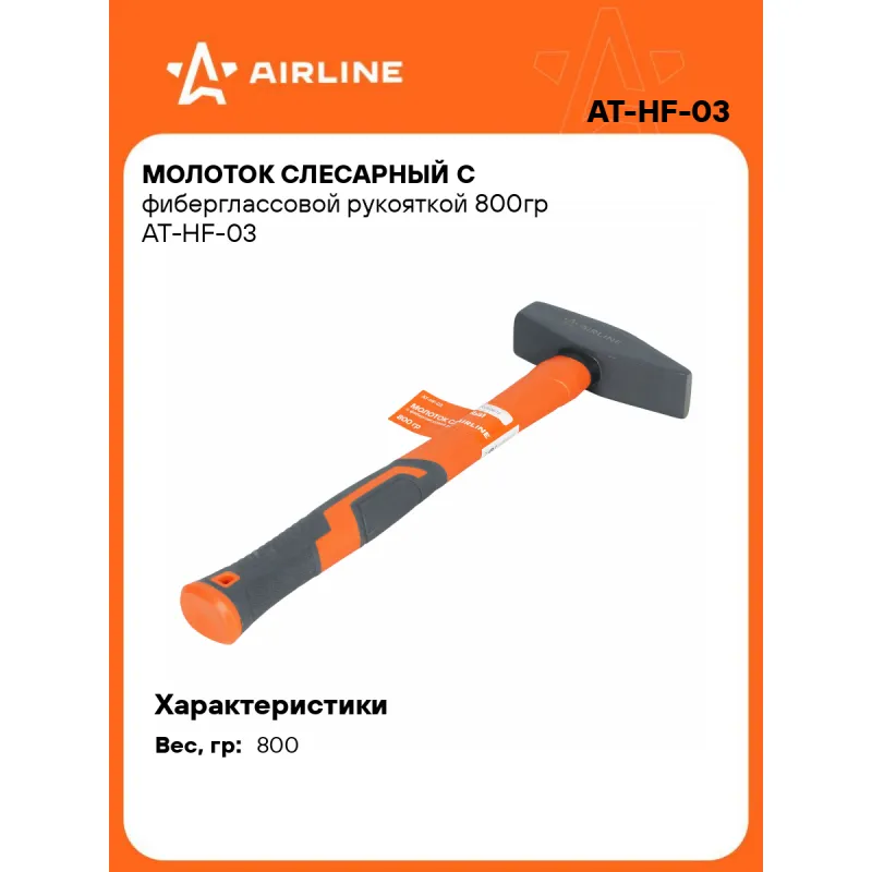 Молоток слесарный с фиберглассовой рукояткой 800гр Описание: Молоток AIRLINE с фиберглассовой рукояткой современный ударный инструмент, разработанный для интенсивных слесарных, монтажных и строительных работ. Он идеально подходит для забивания крепежа, сборки конструкций и ударных воздействий по металлическим и деревянным заготовкам. Боёк выполнен из закалённой инструментальной стали, обладает высокой прочностью и устойчивостью к износу. Рукоятка из фибергласа обеспечивает лёгкость, повышенную виброзащиту и высокую стойкость к ударам, влаге, перепадам температур и химическим воздействиям. Эргономичная прорезиненная накладка предотвращает выскальзывание и повышает комфорт при работе. Характеристики: Артикул: AT-HF-03 OEM номера: 315080, 30308, PHH800, M11055 Вес, гр: 800 Комплектация: Молоток - 1 шт Гарантия: от 1 года.