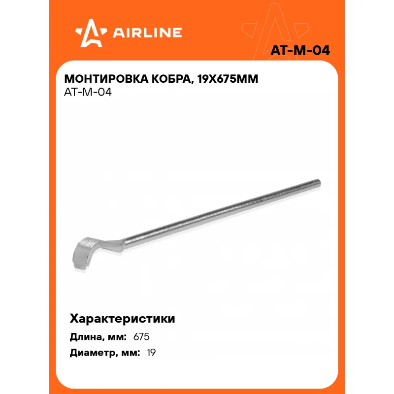 Монтировка кобра, 19х675мм Описание: Монтировка изготовлена из стали марки 45# Характеристики: Артикул: AT-M-04 OEM номера: 34024, 539170 Длина, мм: 675 Комплектация: Монтировка - 1 шт Гарантия: от 1 года.