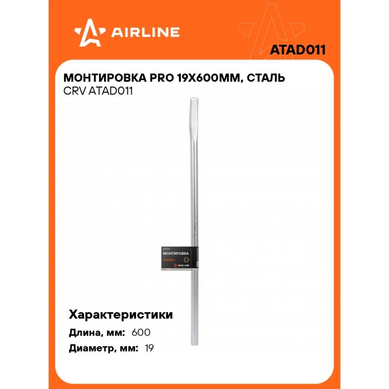 Монтировка PRO 19x600мм, сталь CRV Описание: Монтировка изготовлена из стали CRV, что придает инструменту высокую прочность и долговечность эксплуатации, обеспечивает устойчивость к коррозии. Характеристики: Артикул: ATAD011 Длина, мм: 600 Комплектация: Монтировка - 1 шт Гарантия: от 1 года.