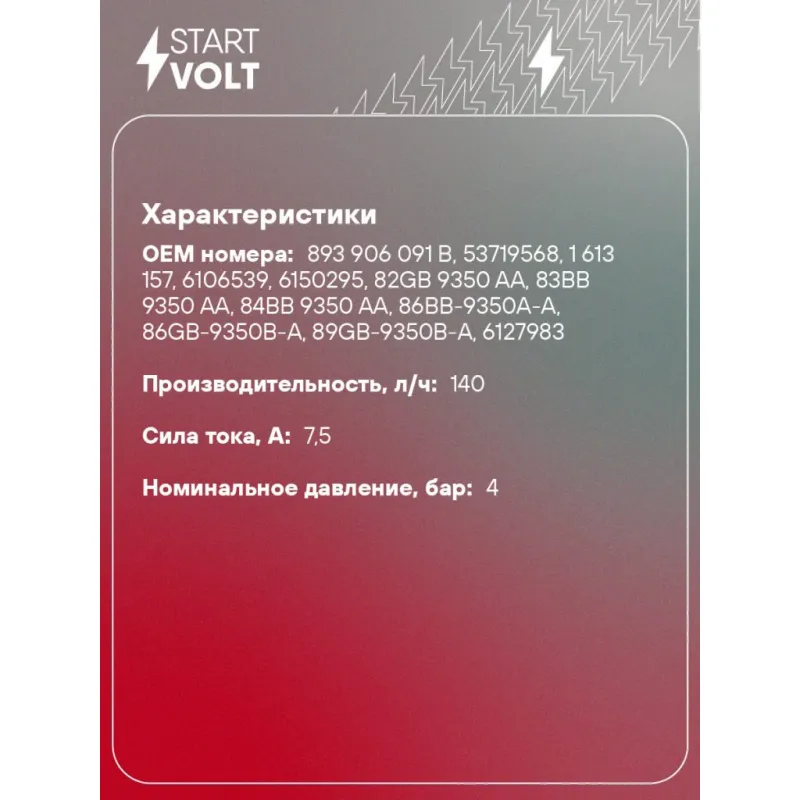 Мотор бензонасоса для автомобилей Audi 80 (86-) 1.8i/Mercedes-Benz E W124 (84-) 2.3i Характеристики: Артикул: SFP 1802 OEM номера: 893 906 091 B, 53719568, 1 613 157, 6106539, 6150295, 82GB 9350 AA, 83BB 9350 AA, 84BB 9350 AA, 86BB-9350A-A, 86GB-9350B-A, 89GB-9350B-A, 6127983, 6158319, 6165570, 6165571, 85BB-9350A-A, 85GB-9350B-A, A 002 091 59 01, A 002 091 88 01, A 002 091 97 01, A 003 091 53 01, A 116 090 00 50, A 116 091 03 01, 002 091 59 01, 002 091 88 01, 002 091 97 01, 003 091 53 01, 116 090 00 50, 116 091 03 01, 22S906091A, 431 906 091 B, 431 906 091 D, 893906091A, 893 906 091 E, 8G0906091A, 0 580 464 125, 0 580 254 911, 1333-79, 119291, 121727, 313720126 Производительность, л/ч: 140 Сила тока, А: 7,5 Номинальное давление, бар: 4 Количество на автомобиль: 1 Подходит для авто: Audi 80 (86-) Mercedes-Benz E-Class W124 (84-) Для проверки применяемости отправьте VIN автомобиля через вкладку "Есть вопросы о товаре?" Комплектация: Паспорт изделия/гарантийный талон - 1 шт Топливный насос - 1 шт Наконечник с отверстием - 2 шт Гайка М4 - 1 шт Гайка М5 - 1 шт Шайба пружинная 4мм - 1 шт Шайба пружинная 5мм - 1 шт Колпачок защитный резиновый - 2 шт Гарантия: от 1 года.