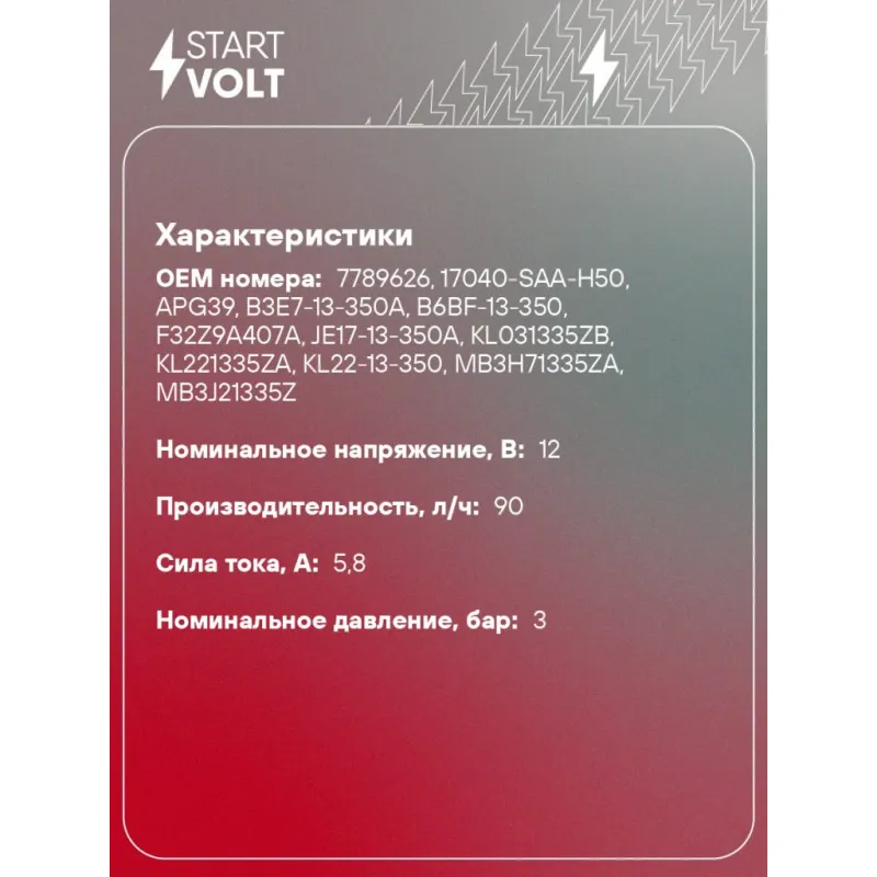 Мотор бензонасоса для автомобилей Toyota Corolla E12 (01-) 1.6i/Daewoo Lanos (97-) 1.5i Характеристики: Артикул: SFP 0805 OEM номера: 7789626, 17040-SAA-H50, APG39, B3E7-13-350A, B6BF-13-350, F32Z9A407A, JE17-13-350A, KL031335ZB, KL221335ZA, KL22-13-350, MB3H71335ZA, MB3J21335Z, AW 334174, AW347058, MB503446, 93 238 459, 93 268 147, 31110 2E351, 31111-22050, 31111 28300, 31111 3L000, 0 580 454 094, 0 580 453 477 Количество на автомобиль: 1 Номинальное напряжение, В: 12 Производительность, л/ч: 90 Номинальное давление, бар: 3 Сила тока, А: 5,8 Подходит для авто: Hyundai Getz (02-) Для проверки применяемости отправьте VIN автомобиля через вкладку "Есть вопросы о товаре?" Комплектация: Топливный насос - 1 шт Фильтр-сетка топливная - 1 шт Паспорт изделия/гарантийный талон - 1 шт Гарантия: от 1 года.