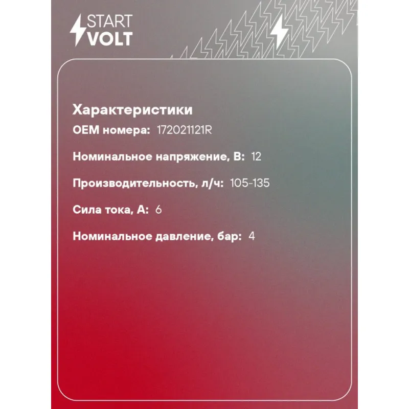 Мотор бензонасоса для автомобилей Renault Duster (10-)/Kaptur (16-) 2.0i Характеристики: Артикул: SFP 0905 OEM номера: 172021121R Номинальное напряжение, В: 12 Производительность, л/ч: 105-135 Сила тока, А: 6 Номинальное давление, бар: 4 Количество на автомобиль: 1 Подходит для авто: Renault Kaptur (16-), Duster (10-) Nissan Terrano (14-) Для проверки применяемости отправьте VIN автомобиля через вкладку "Есть вопросы о товаре?" Комплектация: Топливный насос - 1 шт Паспорт изделия/гарантийный талон - 1 шт Гарантия: от 1 года.