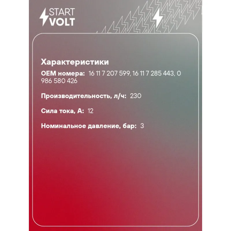 | Количество на автомобиль | 1 |
