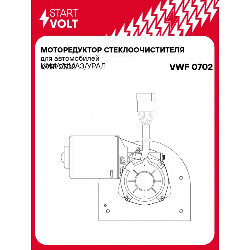 Моторедуктор стеклоочистителя для автомобилей КАМАЗ/МАЗ/УРАЛ Характеристики: Артикул: VWF 0702 OEM номера: 351.5205.200-01 Мощность, Вт: 70 Количество на автомобиль: 1 Сторона установки: спереди Номинальное напряжение, В: 24 Сила тока при малой скорости вращения, А: 1,5 Малая скорость вращения, об/мин: 25 Крутящий момент при малой скорости вращения, Н*м: 33 Диаметр выходного вала: 12 Угол поворота выходного вала, градус: - Сопутствующий товар: Трапеции стеклоочистителя: - Комплектация: Моторедуктор стеклоочистителя - 1 шт Паспорт изделия/гарантийный талон - 1 шт Гарантия: от 1 года.