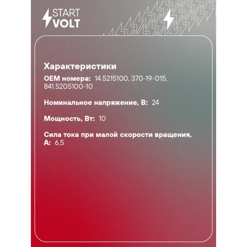 | Сила тока при малой скорости вращения, А | 6,5 |