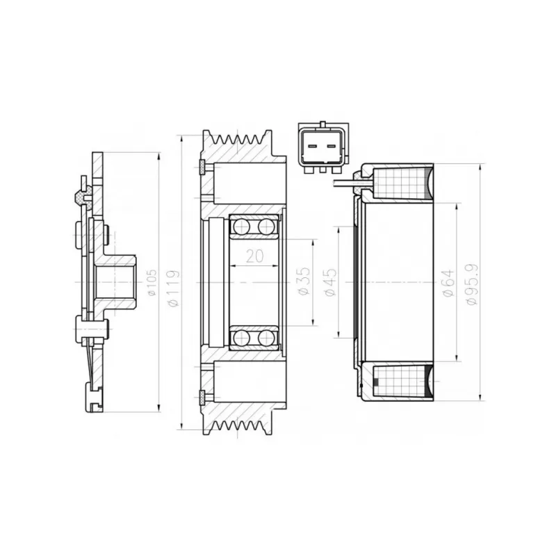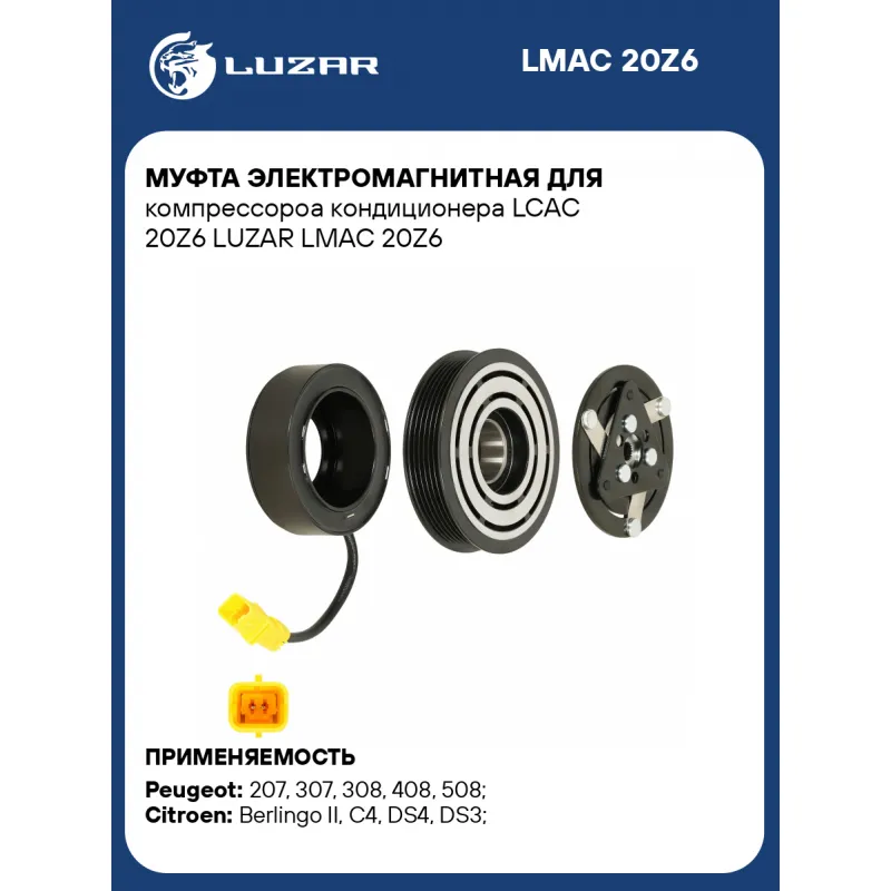 Муфта электромагнитная для компрессороа кондиционера LCAC 20Z6 LUZAR Характеристики: Артикул: LMAC 20Z6 OEM номера: LCAC 20Z6 Тип шкива: 6PK Диаметр шкива: 119 Сопутствующий товар:: LCAC 20Z6 Количество на автомобиль: 1 Напряжение, В: 12 Ограничение производителя: LUZAR Ид.№ компрессора: SD7V16 Совместимость с компрессорами LUZAR: Совместим с LCAC 20Z6 Подходит для авто: Peugeot 207 (06-), 307 (00-), 308 (07-), 408 (10-), 508 (11-), 308 (07-), Partner (08-) Citroen Berlingo II (08-), C4 (04-), DS4 (11-), DS3 (10-), DS3 (10-), C3 Picasso (09-) Для проверки применяемости отправьте VIN автомобиля через вкладку "Есть вопросы о товаре?" Комплектация: Катушка электромагнитная - 1 шт Шкив с подшипником - 1 шт Прижимная пластина - 1 шт Гарантия: от 1 года.