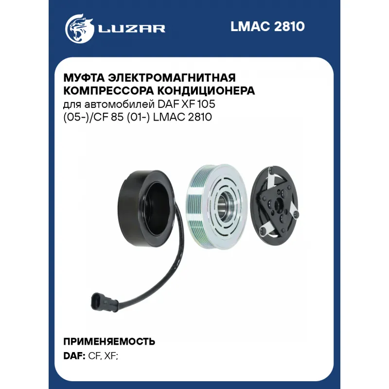 Муфта электромагнитная компрессора кондиционера для автомобилей DAF XF 105 (05-)/CF 85 (01-) Характеристики: Артикул: LMAC 2810 OEM номера: 1815581, 1864126, 1685170, 2041760, 1458999, 1641183 Тип шкива: 7PK Диаметр шкива: 136 Количество на автомобиль: 1 Ограничение производителя: SANDEN Ид.№ компрессора: SD7H15 Напряжение, В: 24 Совместим с компрессорами кондиционера: 1815581, 1864126, 1685170, 2041760, 1458999, 1641183 Совместимость с компрессорами LUZAR: Несовместим Комплектация: Катушка электромагнитная - 1 шт Шкив с подшипником - 1 шт Прижимная пластина - 1 шт Гарантия: от 1 года.