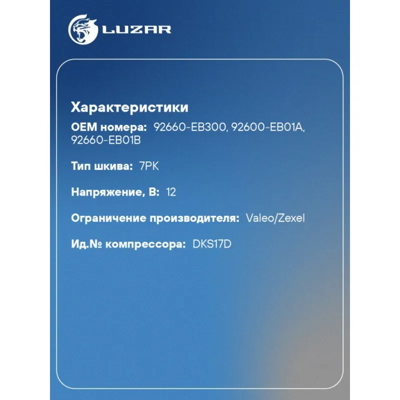 | Совместим с компрессорами кондиционера | 92600-EB01A, 92660-EB01B, 92660-EB300 |