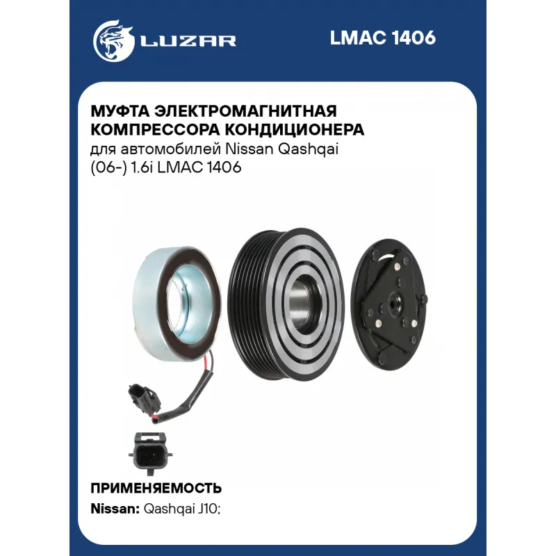 Муфта электромагнитная компрессора кондиционера для автомобилей Nissan Qashqai (06-) 1.6i Характеристики: Артикул: LMAC 1406 OEM номера: 92660-JD00A, 92600JD000 Тип шкива: 7PK Диаметр шкива: 115 Количество на автомобиль: 1 Напряжение, В: 12 Ограничение производителя: Calsonic Kansei Ид.№ компрессора: CVC Совместимость с компрессорами LUZAR: Несовместим Совместим с компрессорами кондиционера: 92600JD000, 92660-JD00A Подходит для авто: Nissan Qashqai J10 (06-) Для проверки применяемости отправьте VIN автомобиля через вкладку "Есть вопросы о товаре?" Комплектация: Катушка электромагнитная - 1 шт Шкив с подшипником - 1 шт Прижимная пластина - 1 шт Паспорт изделия - 1 шт Гарантия: от 1 года.