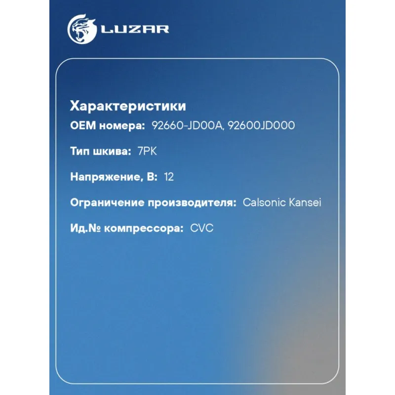 | Совместим с компрессорами кондиционера | 92600JD000, 92660-JD00A |