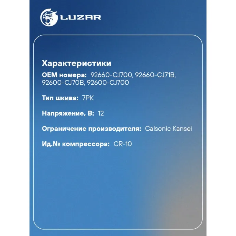 | Совместим с компрессорами кондиционера | 92600-CJ700, 92600-CJ70B, 92660-CJ700, 92660-CJ71B |