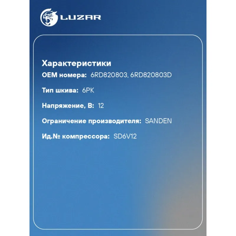 | Совместим с компрессорами кондиционера | 6RD820803, 6RD820803D |