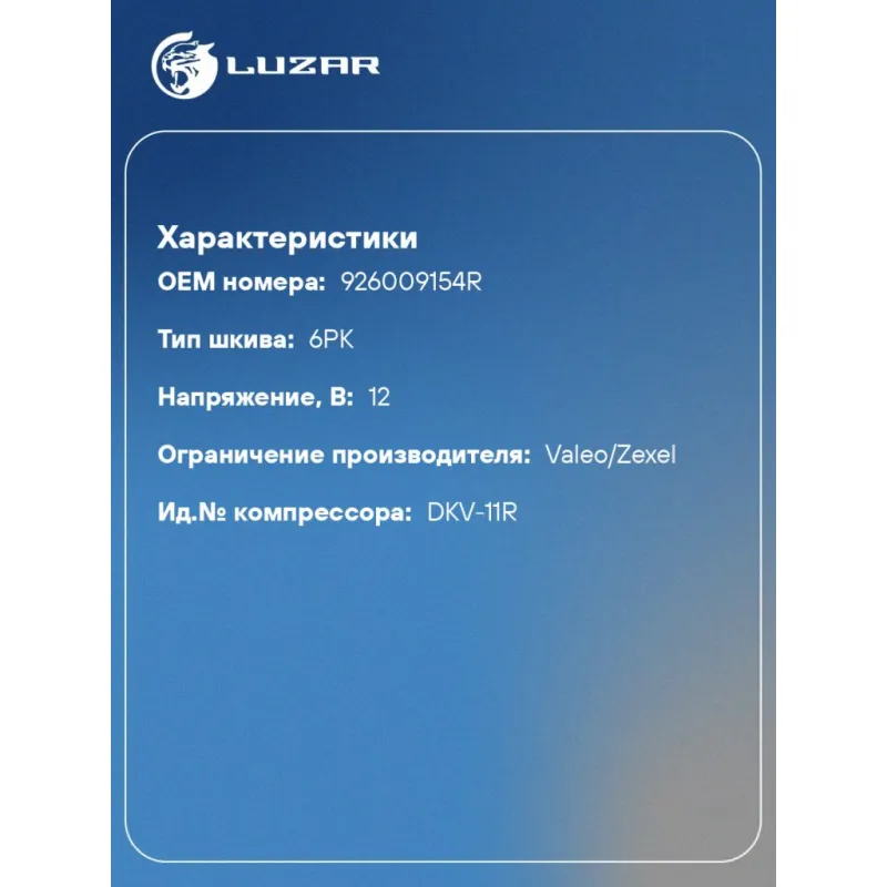 | Совместим с компрессорами кондиционера | 926009154R |