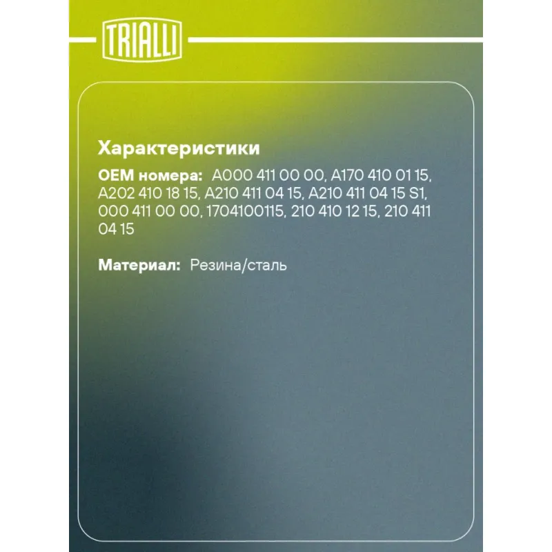 | Количество на автомобиль | 1 |