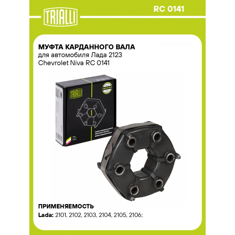 Муфта карданного вала для автомобиля Лада 2123 Chevrolet Niva Характеристики: Артикул: RC 0141 OEM номера: 2123-2202120 Материал: Резина/сталь Гарантийный срок: 1 год/ 30 000 км Количество на автомобиль: 1 Товарная линейка: BLACK Подходит для авто: ВАЗ 2101, 2101, 2102, 2102, 2103, 2103, 2104, 2105, 2105, 2106, 2106, 2107, 2121, 21213, 2131, 2104, 2105, 2107, 21213, 2131, 2120, 21214 Для проверки применяемости отправьте VIN автомобиля через вкладку "Есть вопросы о товаре?" Комплектация: Муфта карданного вала - 1 шт Гарантия: от 1 года.