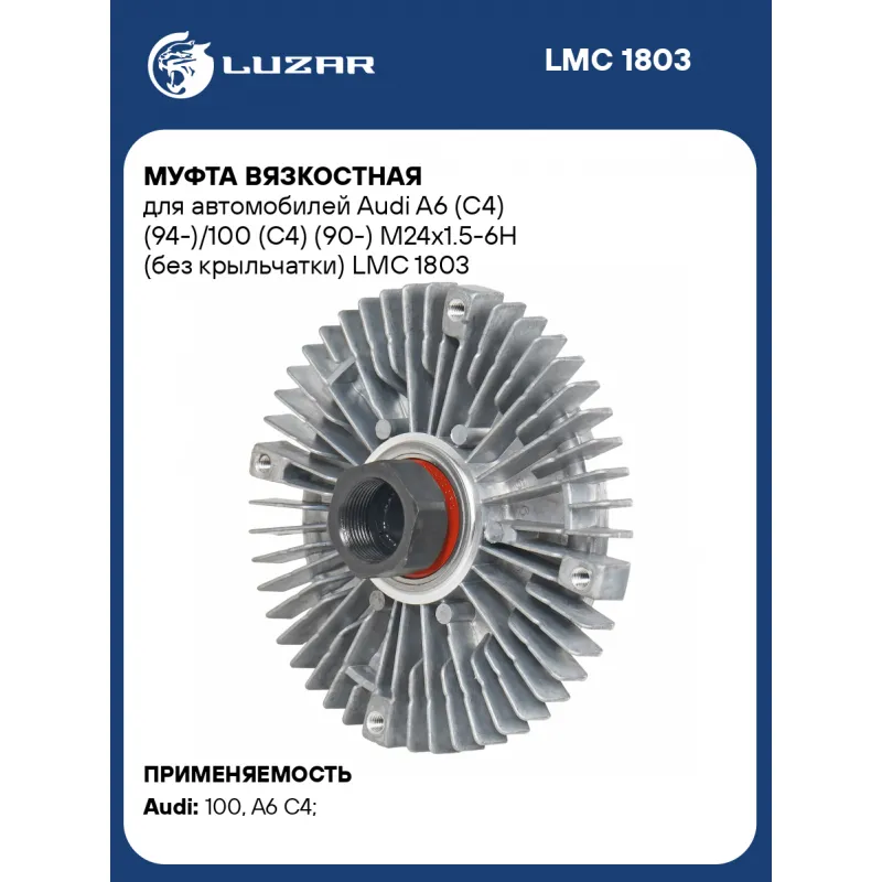 Муфта вязкостная для автомобилей Audi A6 (C4) (94-)/100 (C4) (90-) М24х1.5-6H (без крыльчатки) Характеристики: Артикул: LMC 1803 OEM номера: 4A0121350, 4A0121350B Температура включения, °С: 75 Температура выключения, °С: 55 Количество на автомобиль: 1 Трансмиссия: MT/AT Кондиционер: +/- Резьба: М24х1.5-6H Диаметр муфты, мм.: 138 Вид эксплуатации: термический Подходит для авто: Audi 100 (90-), A6 C4 (94-) Для проверки применяемости отправьте VIN автомобиля через вкладку "Есть вопросы о товаре?" Комплектация: Вязкостная муфта - 1 шт Гарантия: от 1 года.