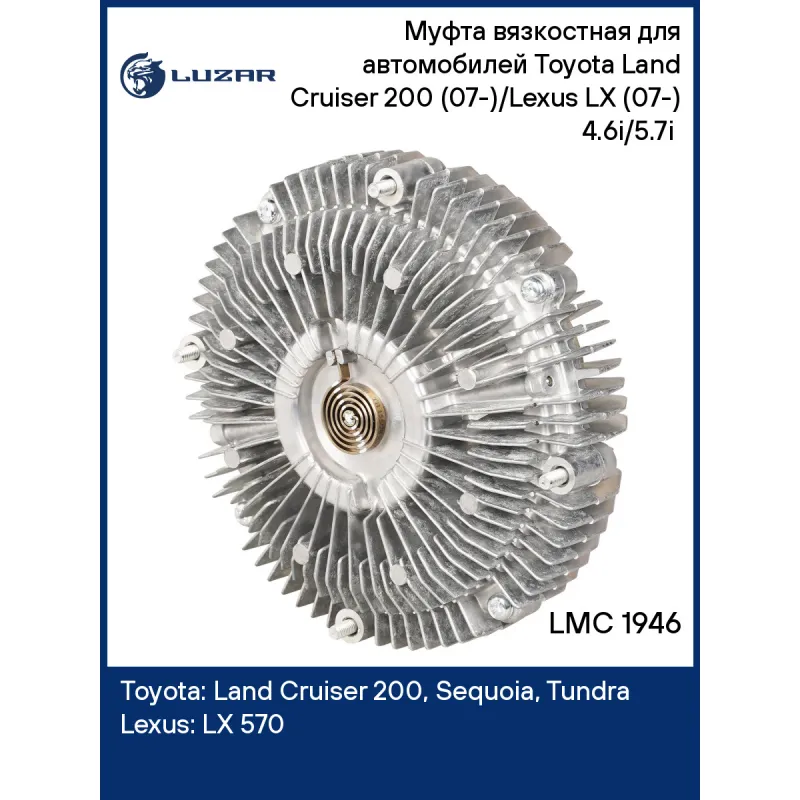 Муфта вязкостная для автомобилей Toyota Land Cruiser 200 (07-)/Lexus LX (07-) 4.6i/5.7i (без крыльчатки) Характеристики: Артикул: LMC 1946 OEM номера: 1621038070, 1621038071 Трансмиссия: AT Кондиционер: + Сопутствующий товар: Насосы водяные (помпы): LWP 1946; LWP 1948 Температура включения, °С: 80±10 Температура выключения, °С: 50±10 Количество на автомобиль: 1 Двигатель: [1UR-FE; 3UR-FE] Диаметр муфты, мм.: 188 Вид эксплуатации: термический Подходит для авто: Toyota Land Cruiser 200 (07-), Land Cruiser 200 (15-), Sequoia (08-), Tundra (06-) Lexus LX 570 (07-) Для проверки применяемости отправьте VIN автомобиля через вкладку "Есть вопросы о товаре?" Комплектация: Муфта вязкостная - 1 шт Гарантия: от 1 года.