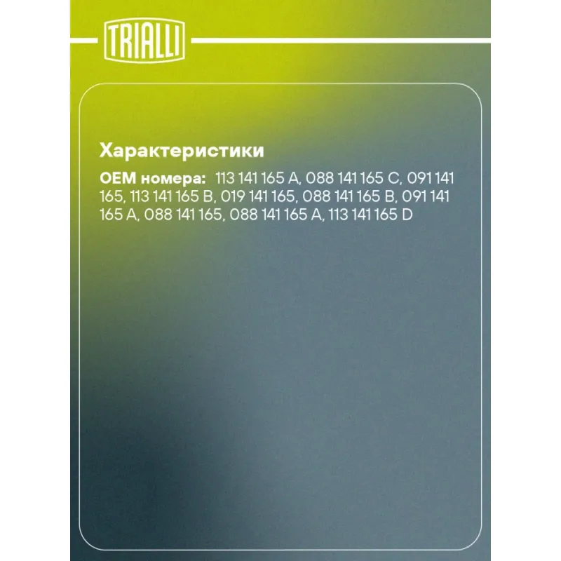 | Количество на автомобиль | 1 |