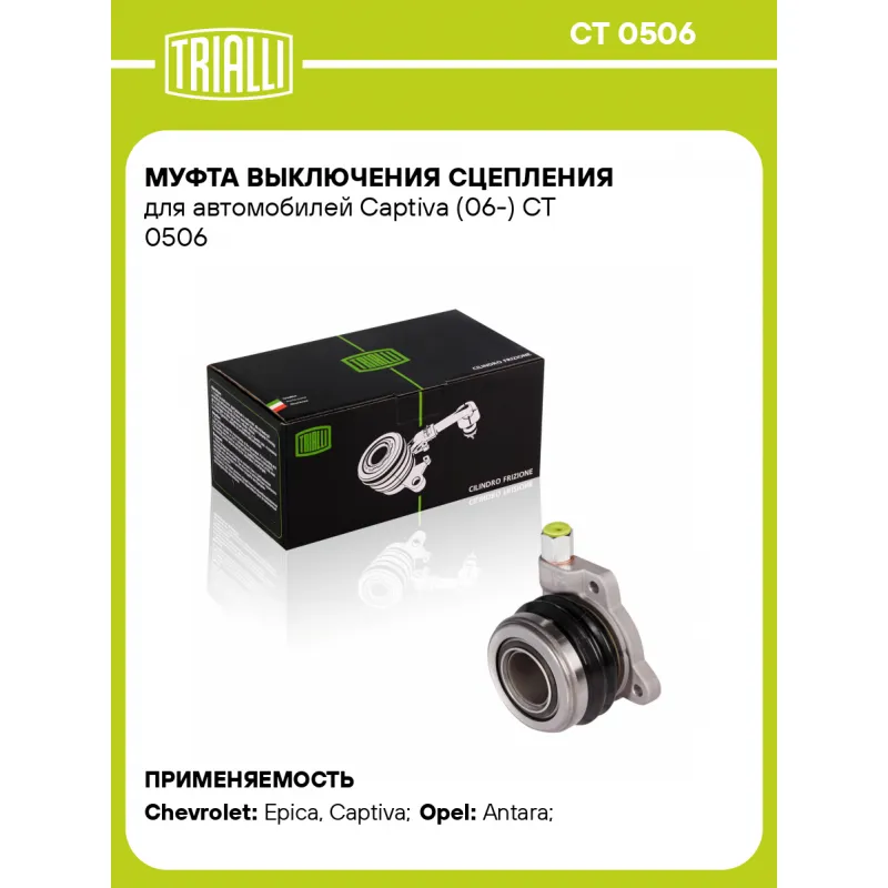 Муфта выключения сцепления для автомобилей Captiva (06-) Характеристики: Артикул: CT 0506 OEM номера: 4805569, 4817537, 96625634, 48 11 465, 48 17 538, 96865887, 96961189 Количество на автомобиль: 1 Сопутствующие товары:: комплекты сцеплений Тип привода: гидравлический Гарантийный срок: 1 год/30 000 км Товарная линейка: BLACK Подходит для авто: Chevrolet Epica (06-), Captiva (06-) Opel Antara (06-) Для проверки применяемости отправьте VIN автомобиля через вкладку "Есть вопросы о товаре?" Комплектация: Муфта выключения сцепления в сборе (гидравлическая) - 1 шт Гарантия: от 1 года.